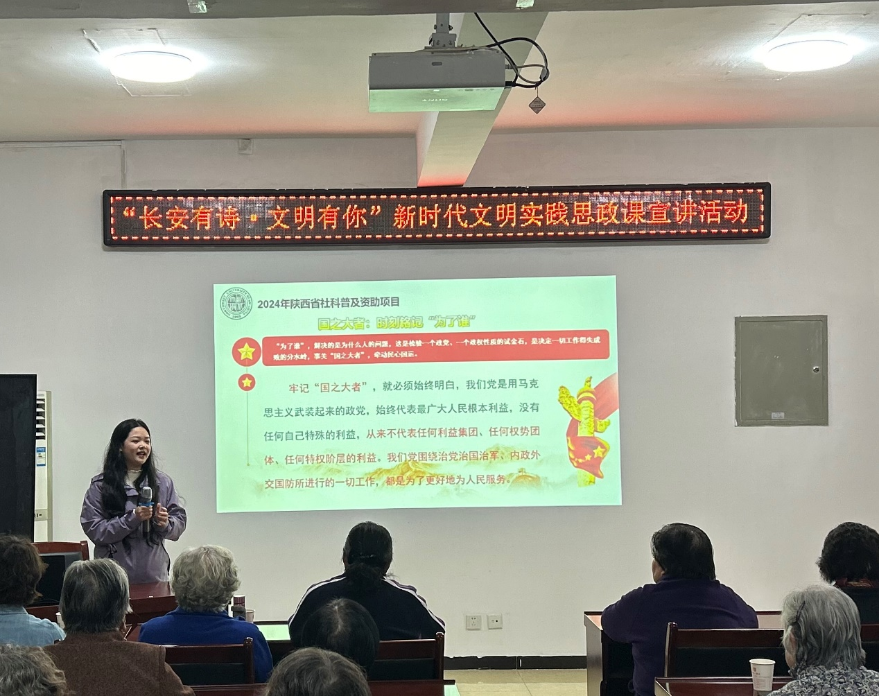 11月13日,365英国官网红桅杆思政理论学习社团在灞桥区席王街道电厂社区开展理论宣讲,本次活动的宣讲人分别为2024级马克思主义基本原理专业的硕士研究生王智远和思想政治教育专业的硕士研究生熊丽娜。