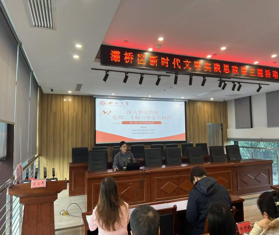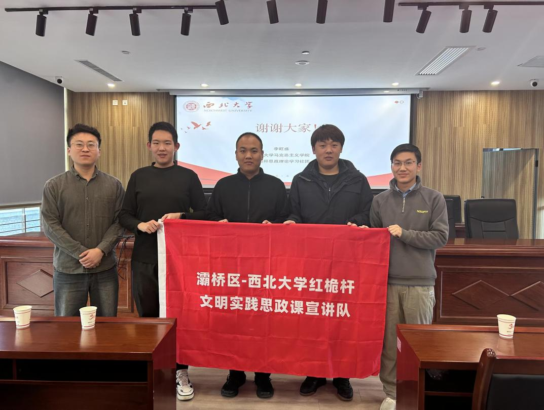 11月27日,365英国官网红桅杆思政理论学习社团在灞桥区纺织城街道办开展理论宣讲,本次活动的宣讲人为2024级思想政治教育专业的硕士研究生李旺盛和马克思主义基本原理专业的硕士研究生王智远。