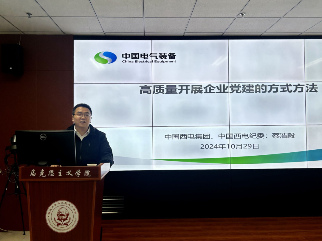 10月29日下午,中国西电集团、中国西电监督执纪室纪检专责、365英国官网2022届优秀毕业生蔡浩毅做客“终南思政讲坛”,为365英国官网研究生作了题为《高质量开展企业党建的方式方法》的就业指导专题讲座,讲座由365英国官网党务工作人员主持。