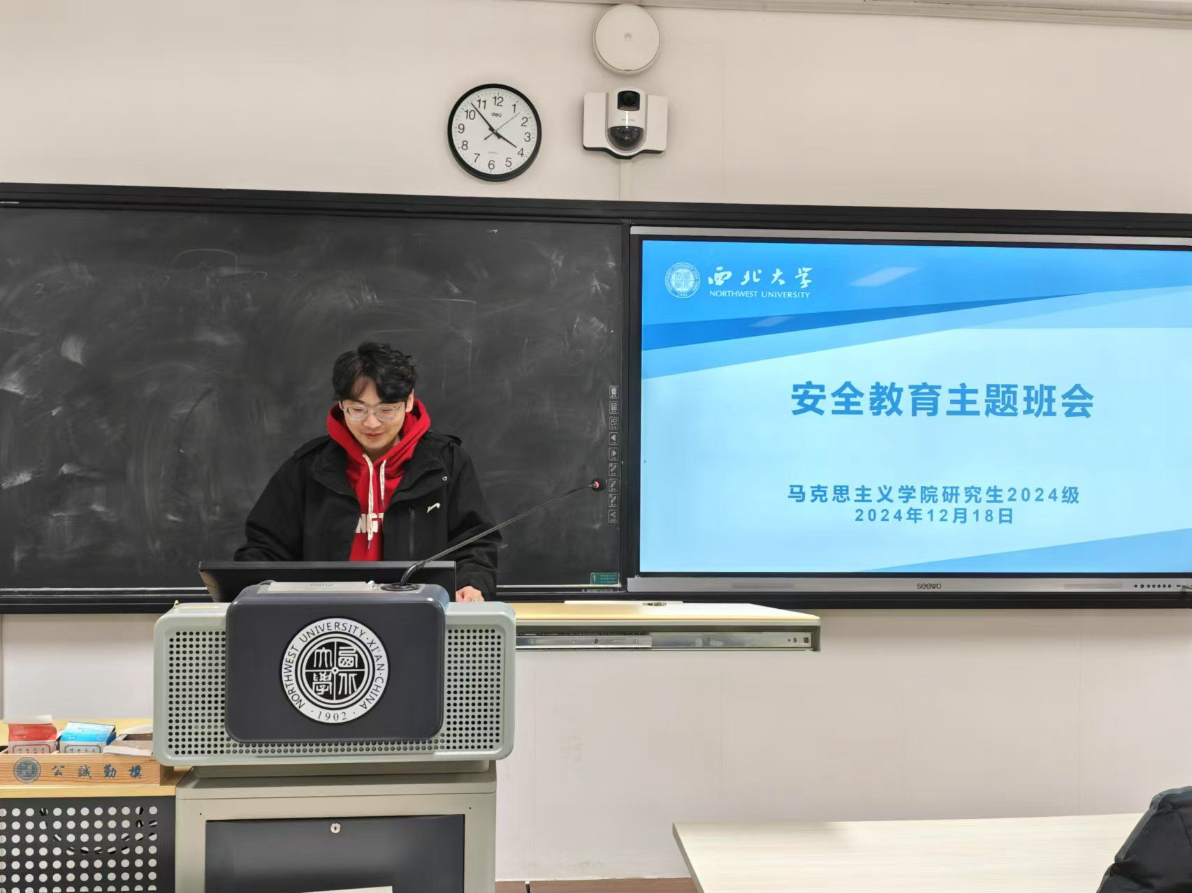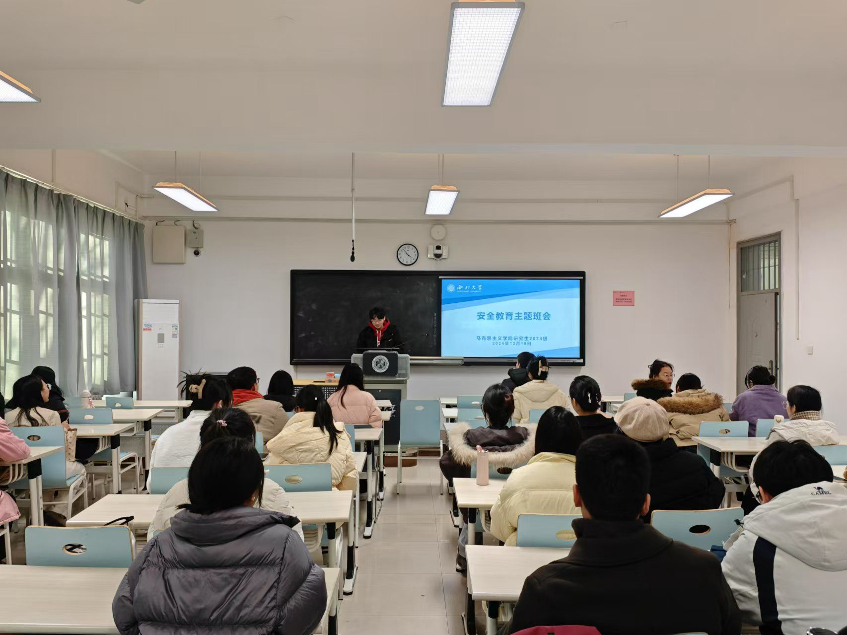 12月18日下午,365英国官网召开安全教育主题班会。此次班会由2024级硕士生副班长张天一主持,2024级全体硕士研究生参与。