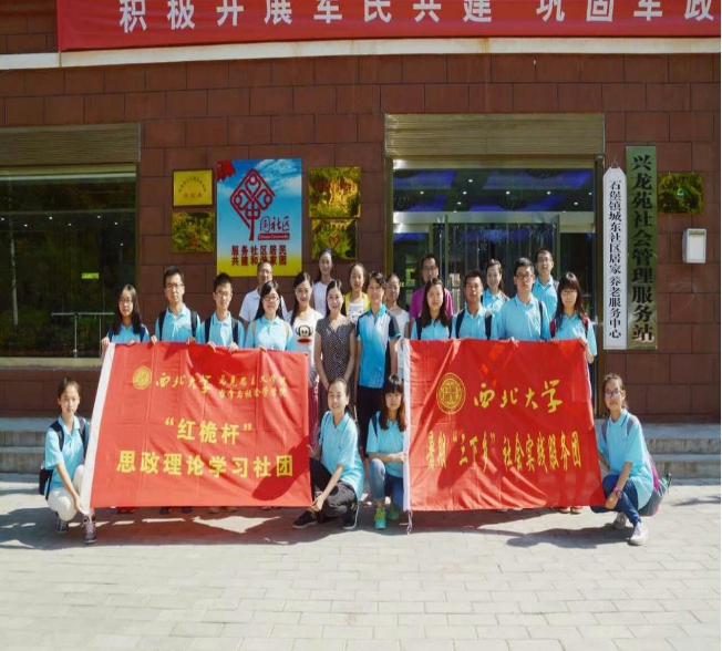 5.积极开展实践活动:实践活动是本社团深入推进“四进四信”工作的特色活动。社团的实践活动以时政热点主题为主题,多元形式活动并存为原则,开展了一系列效果明显的实践活动。尤其是社团组织开展的暑期社会实践活动,入基层、体民生,谦受益、深调研,怀壮志、仰英烈;以培育与践行社会主义核心价值观、青少年价值观调研等为主题,分赴西北和中部多个省份开展调研宣讲活动;不仅加强社团干部自身的理论素养和实践涵养,也向广大人民群众带去了党中央和团中央的声音。