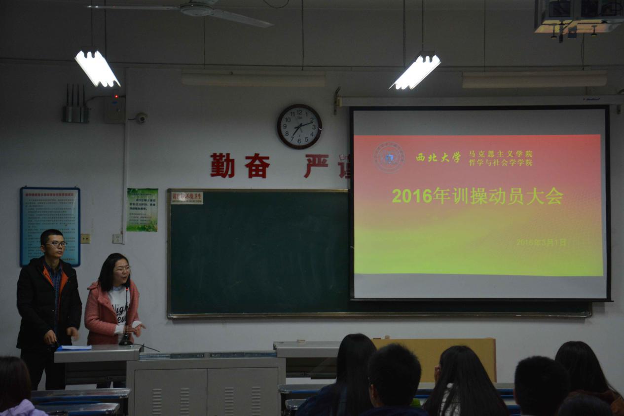 主训王晨阳和陈迪芳在讲台上说着,大家都在讲台下认真的听着,这一场训操的剧目,马上就要在阳光下——拉开帷幕。