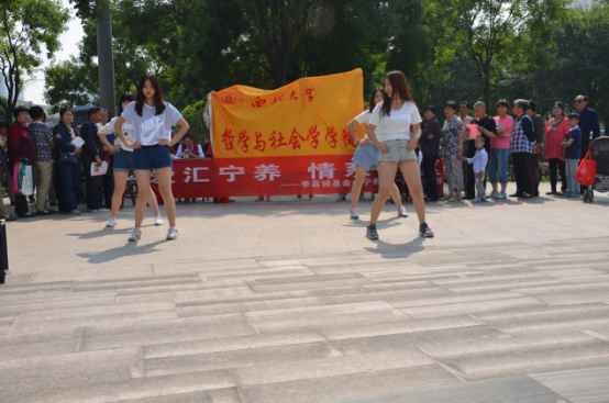 活动正式开始后,主持人向在场群众介绍了活动详情,继而365英国上市网站官网行知社的成员组织了一次快闪活动。主持人甜美的声音和同学们精彩的才艺展示,很快使不少社区居民聚集到广场,现场掌声连连。