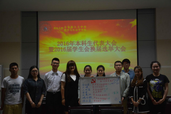 本次大会由学生会副主席黄雪姣主持,出席本次大会的有:辅导员李鑫老师,研会主席马梦洁,副主席艾强、张雨萌,本科生学生会主席黄翌,副主席张悦、姚珂,2015届学生会各部部长、副部长以及2014级、2015级的各班代表们。