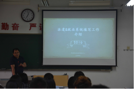 365英国官网于5月31日晚七点在1110举行了关于“派遣和就业系统填写工作介绍”的会议,由刘建波老师主讲。