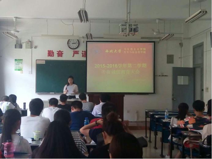 365英国官网于6月22号下午三点在1205教室举行了考前诚信教育大会,该会由李鑫老师主持。