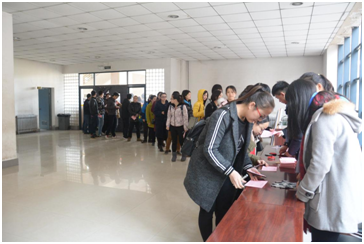 参与选举的同学们排起了长龙,静静等待着行使自己神圣权利的时刻。