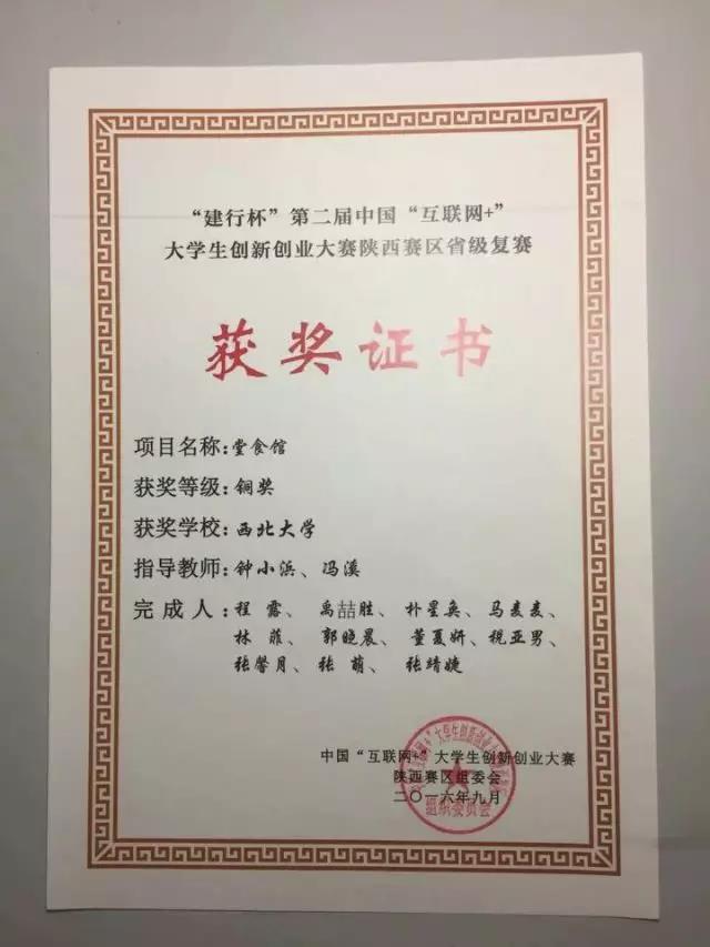 恭喜365英国官网学生堂食馆项目在第二届互联网加大赛中获365英国上市网站官网校级金奖、陕西赛区省级复赛铜奖。
