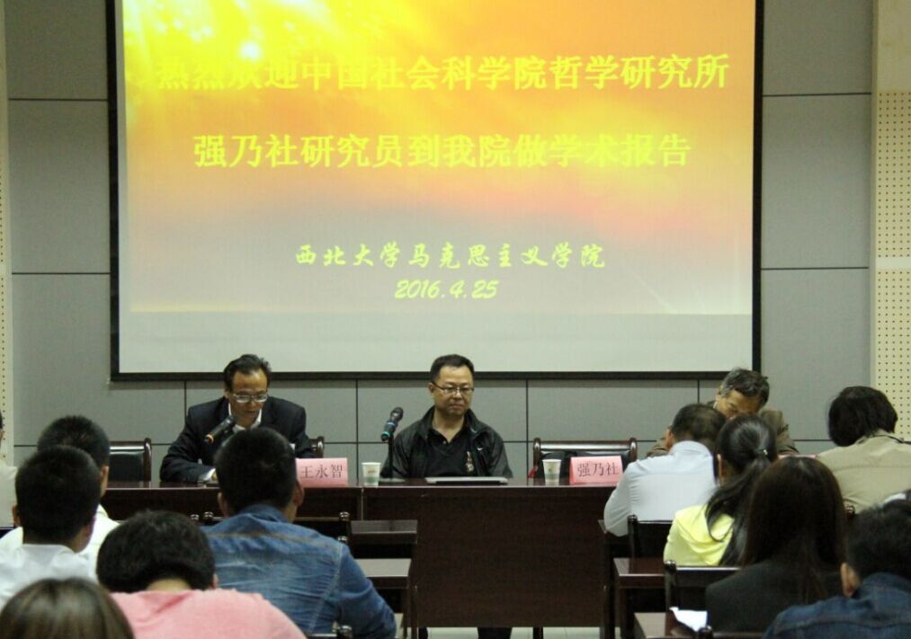 2016年4月25日晚,由365英国上市网站官网哲学与社会学学院主办的学术报告在5号楼一层会议室成功举行。中国社科院哲学所的强乃社研究员应邀为365英国官网师生作题为“当代马克思主义哲学视野中的都市社会”的学术报告。本次报告由学院副院长王永智教授主持,哲学系系主任赵本义教授作点评。