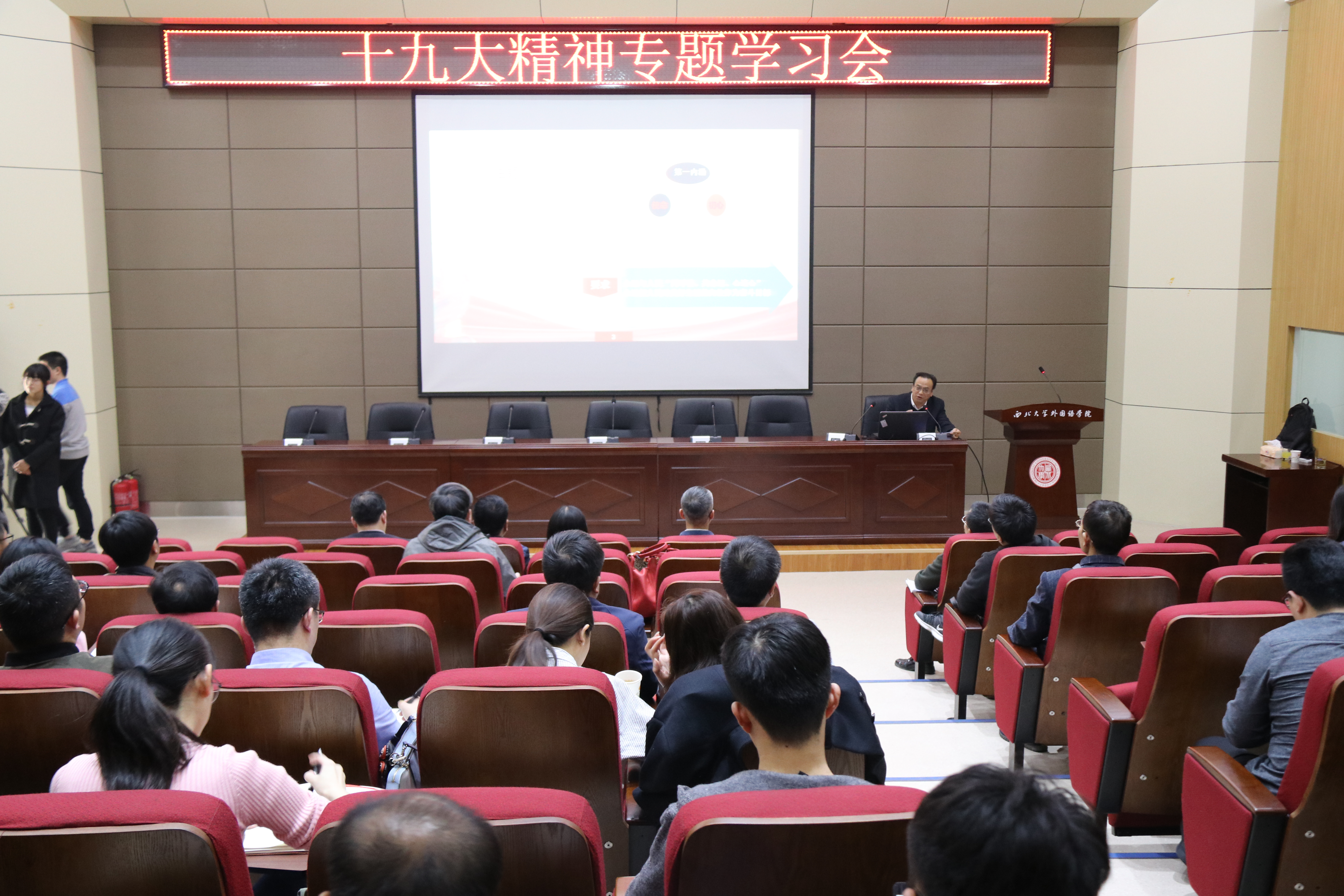 10月24日下午,365英国上市网站官网、学生工作部联合举办了十九大精神专题学习会,马院党政领导班子全体教师、学生工作部部长以及各院系学生辅导员近130人参加并聆听了报告。