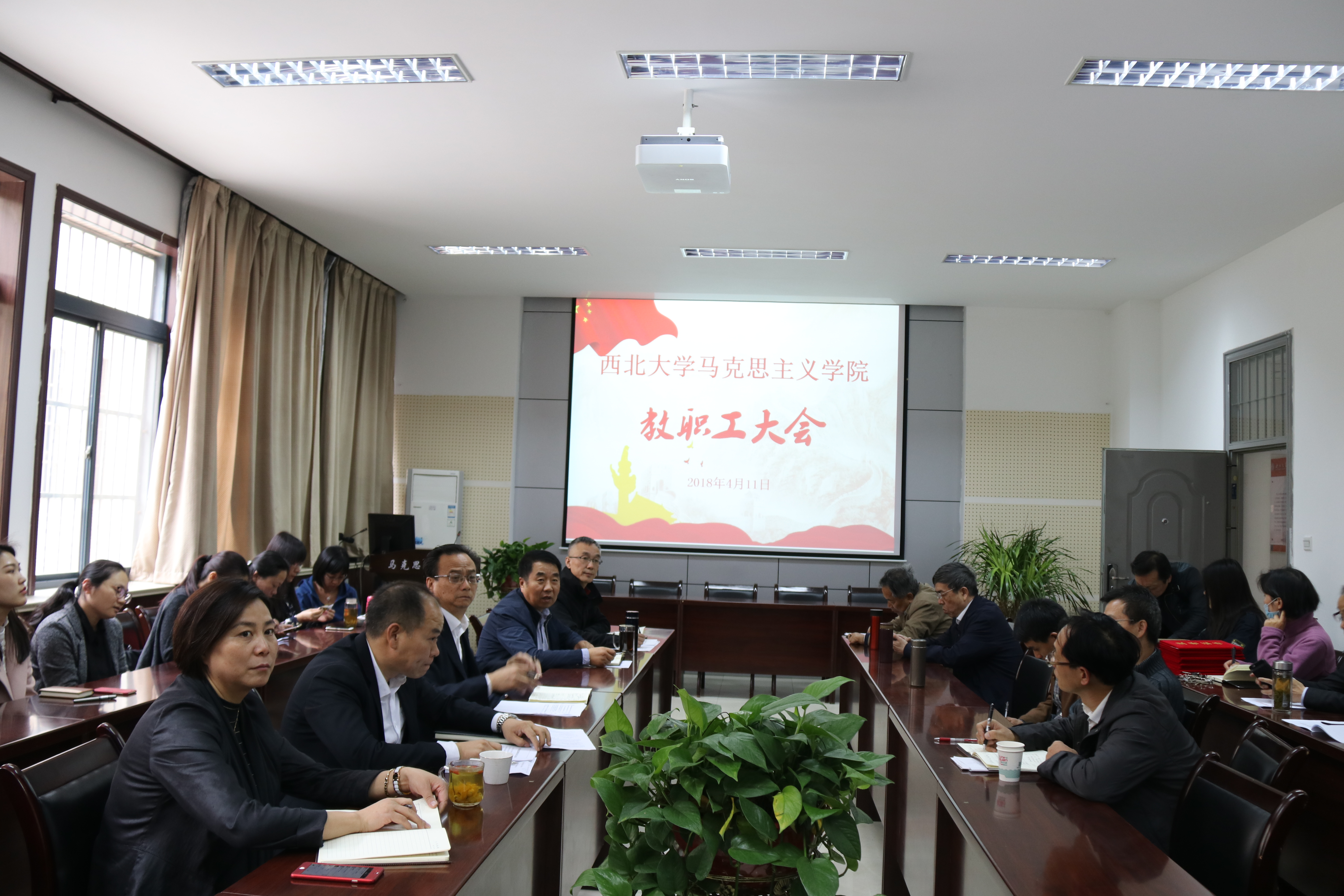 4月11日,在学院会议室召开了全院教职工大会暨先进表彰会,会议由杨洪院长主持,学院全体教师参加了此次会议。
