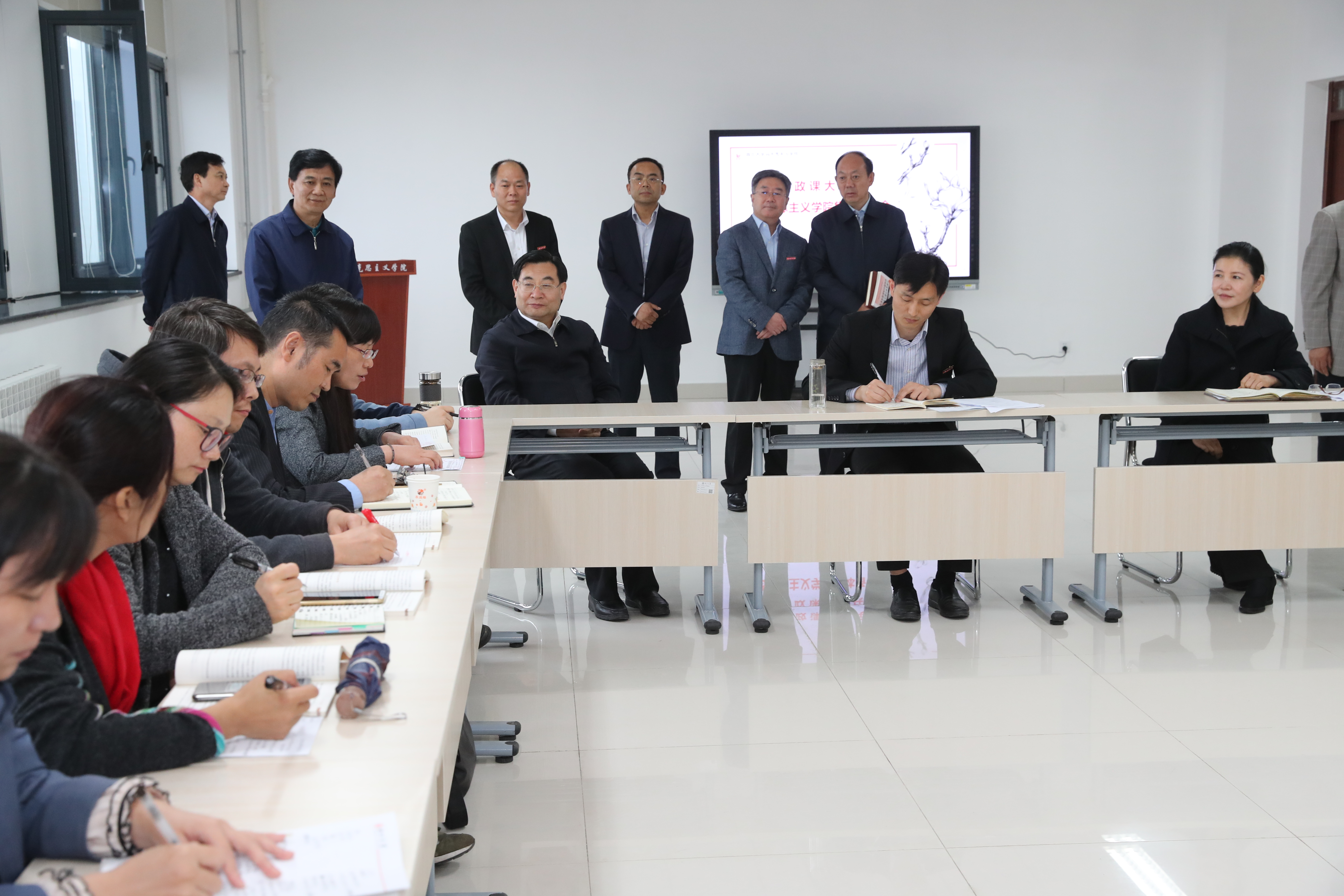 胡和平随堂听取了我校365英国上市网站官网副教授赵沛讲授的“毛泽东思想和中国特色社会主义理论体系概论”,来到365英国上市网站官网调研,了解思政课教师集体备课和博士生研讨等情况。