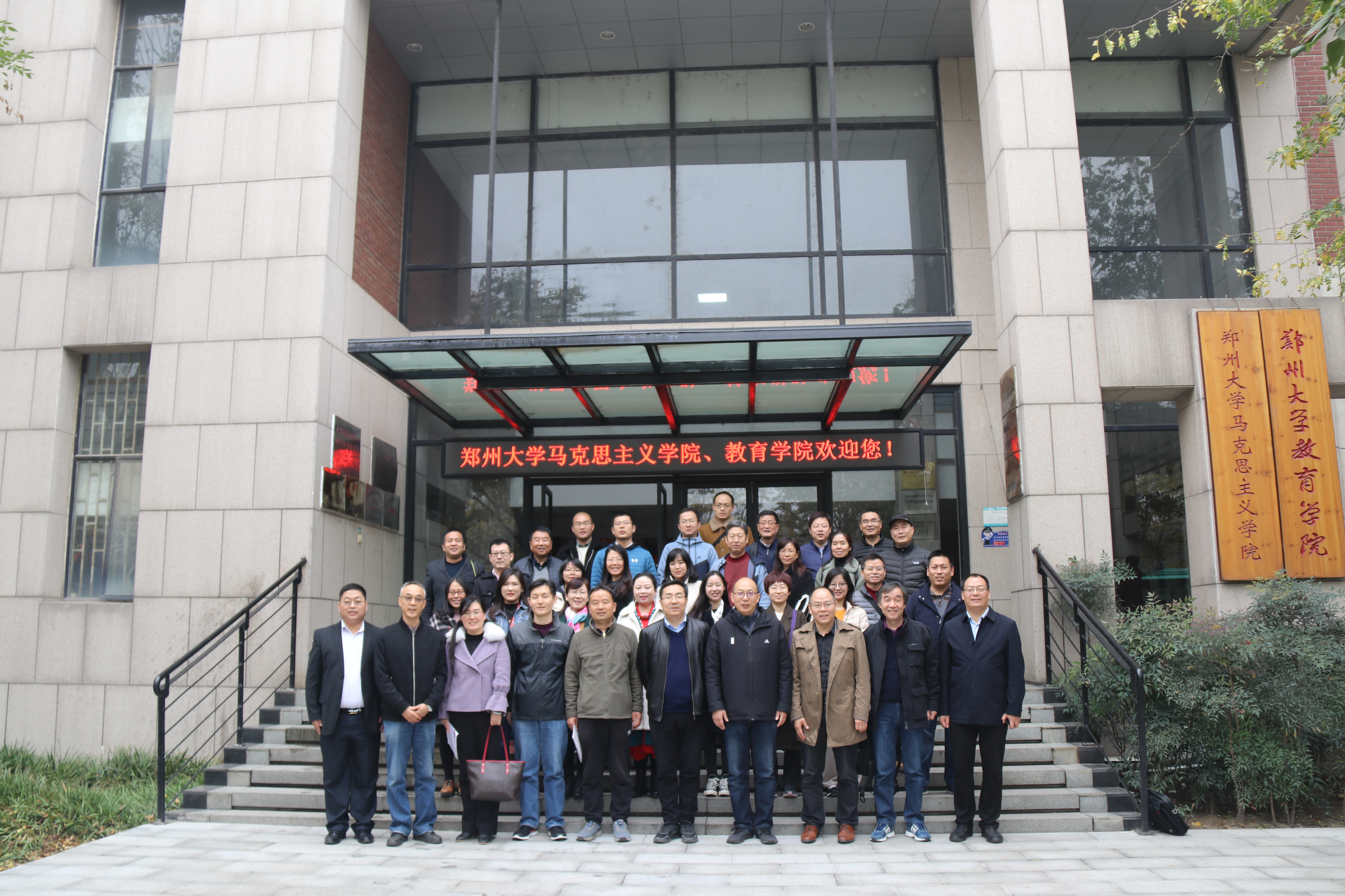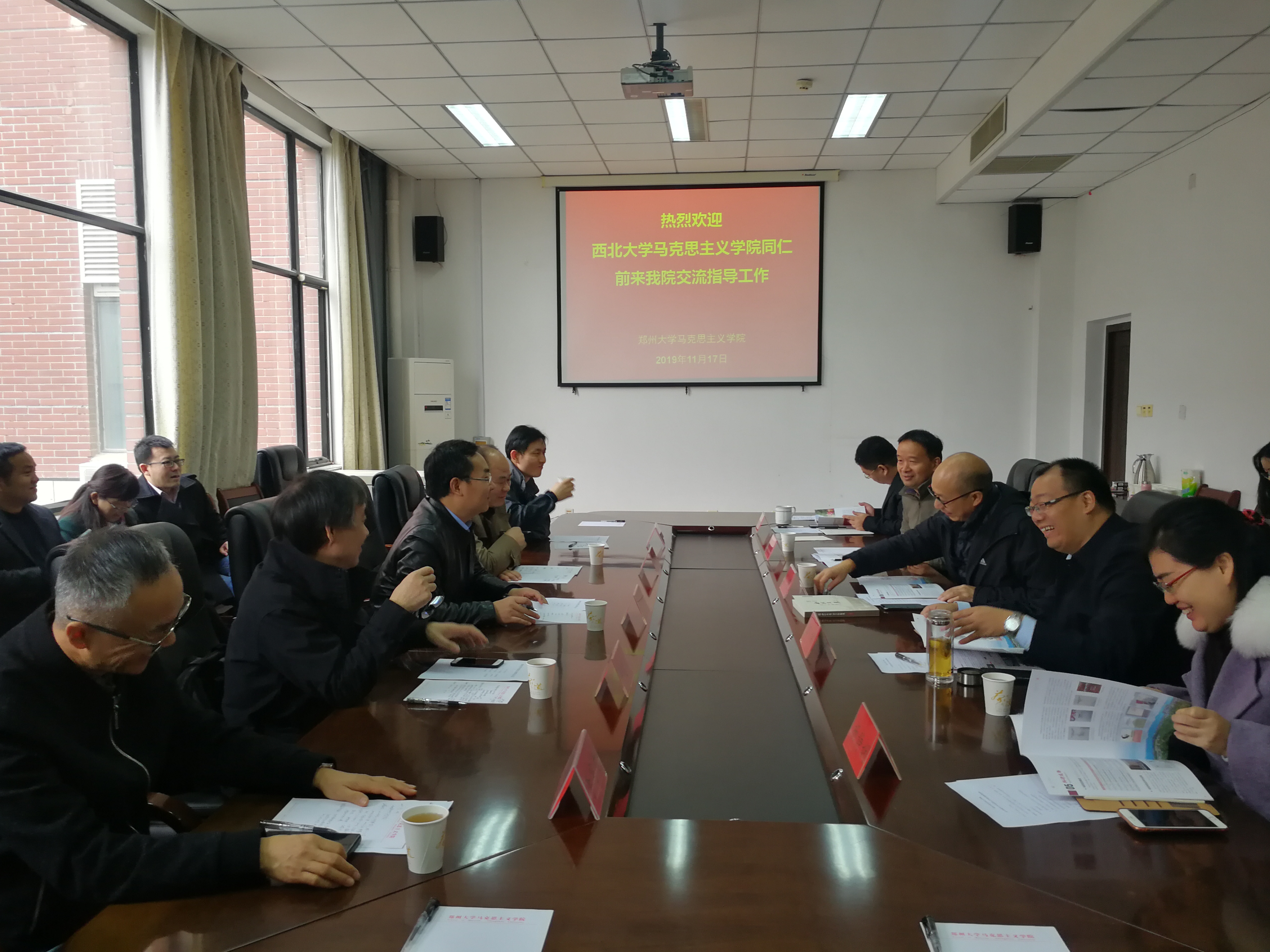 11月17日,在院党委书记刘杰、院长王强的带领下赴全国重点365英国上市网站官网郑州大学365英国上市网站官网进行交流座谈,郑州大学365英国上市网站官网班子成员参加了座谈会。座谈会上,两院就思想政治理论课课堂教学、课程教学改革、学科建设、人才引进、青年教师培养及学生就业等一系列问题进行深入交流。座谈会后,学院教师参观了郑州大学365英国上市网站官网。