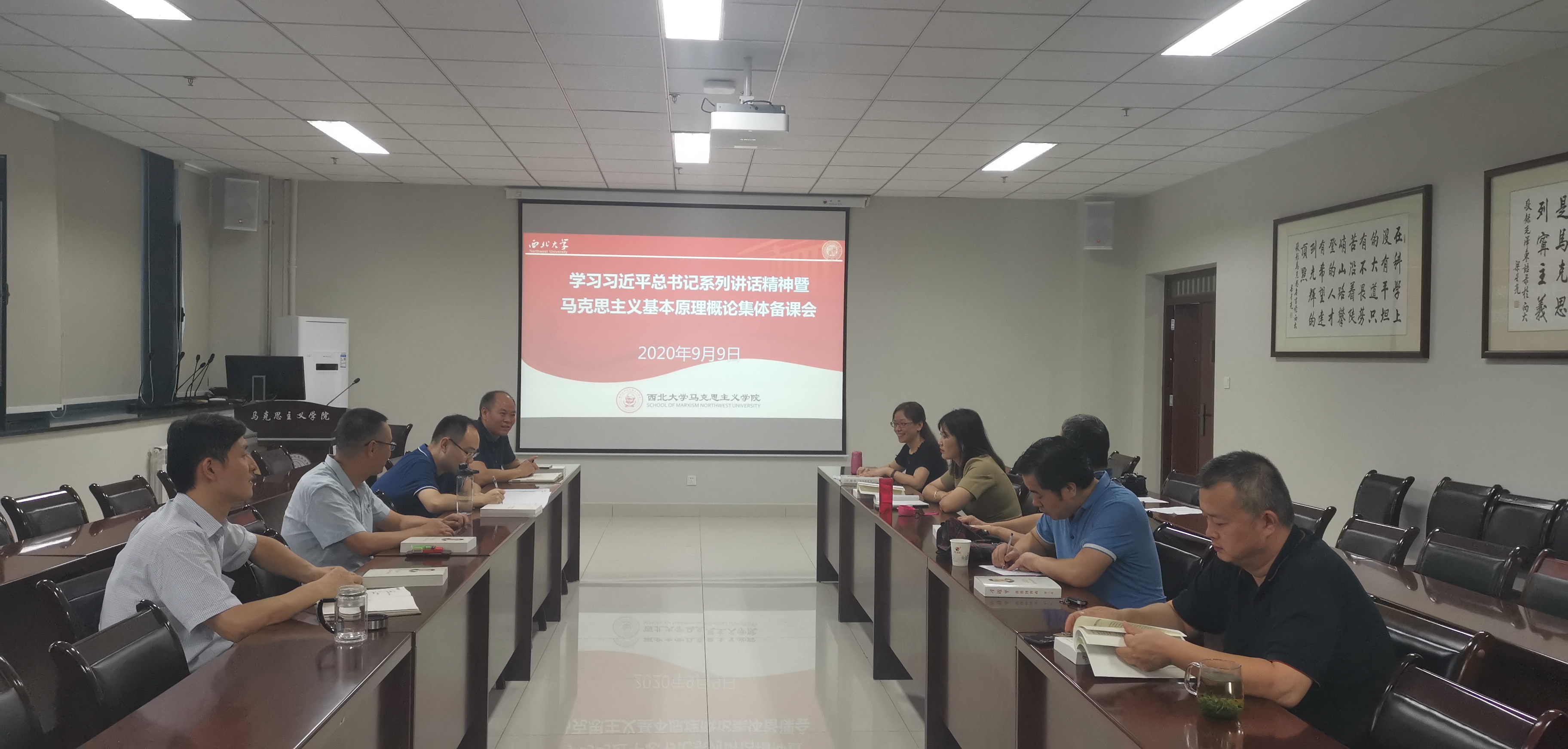 2020年9月9日下午,按照学院和上级有关部门部署,365英国上市网站官网马克思主义基本原理概论教研室在学院会议室举行本学年第一次集体备课会。在备课会上,与会老师们研讨学习了《习近平谈治国理政》第三卷,习近平总书记谈思政课是落实立德树人任务的关键课程,习近平总书记在抗战胜利75周年纪念大会上的讲话和在抗疫表彰大会的讲话精神等。大家谈感想,说体会,就如何在马原课堂上讲好“习近平新时代中国特色社会主义思想”进行了深入探讨。备课会由付粉鸽教授主持,副院长李志松参加了备课会。