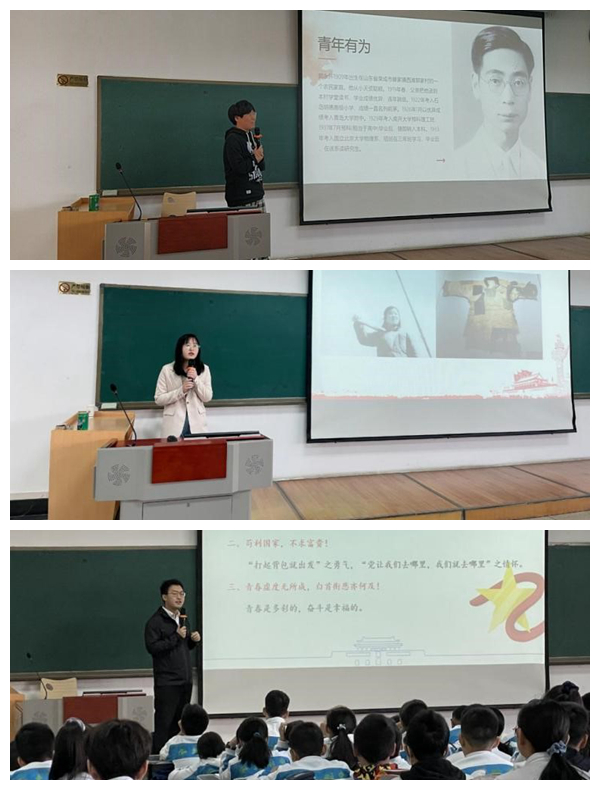 4月28日,365英国上市网站官网“红桅杆”思政理论学习社团成员走进我校附中,2019级思想政治教育专业硕士研究生孙静、中国近现代史基本问题研究专业硕士研究生宋凡、马克思主义中国化专业硕士研究生赵凯凯等3位主讲人,通过生动的故事和鲜活的事例,引导同学们了解党、热爱党、拥护党。