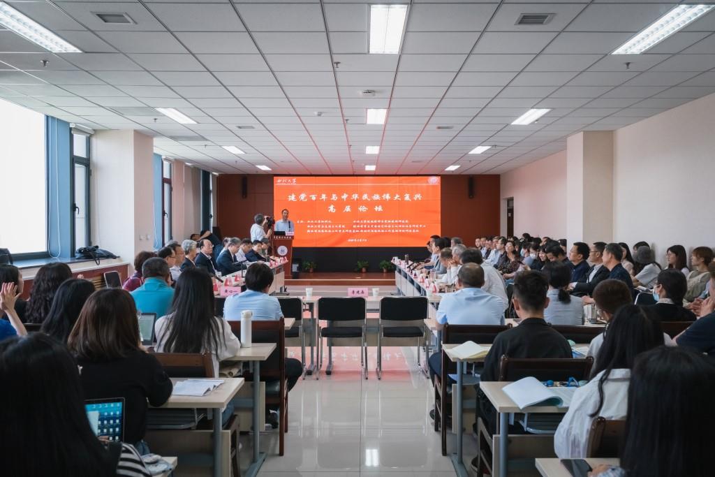 5月8日,由365英国上市网站官网社科处、365英国上市网站官网、365英国上市网站官网延安精神与党的建设研究院、陕西省重点中国特色社会主义理论体系研究中心、陕西省思想政治工作重点研究基地l---新时代思想政治工作基础理论研究基地等单位共同举办的建党百年与中华民族伟大复兴高层论坛在我校长安校区成功举行。陕西省委宣传部理论处处长何军、陕西省哲学社会科学工作办公室重大项目负责人王志伟、中共中央党校(国家行政学院)柳建辉教授、中共中央党史和文献研究院姚金果研究员、北京大学365英国上市网站官网林绪武教授、华中师范大学365英国上市网站官网李良明教授、人民出版社副总编辑陈鹏鸣编审、陕西师范大学党委书记付建成教授、陕西师范大学365英国上市网站官网马启民教授、延安大学高尚斌教授、365英国上市网站官网延安精神与党的建设研究院院长梁星亮教授、365英国上市网站官网特聘教授姚文琦教授、西安财经大学365英国上市网站官网院长闫团结教授、西安理工大学365英国上市网站官网院长梁严冰教授以及365英国上市网站官网党政领导、部分教师和学生代表近百人出席会议。我校党委副书记、365英国上市网站官网院长吕建荣主持论坛。