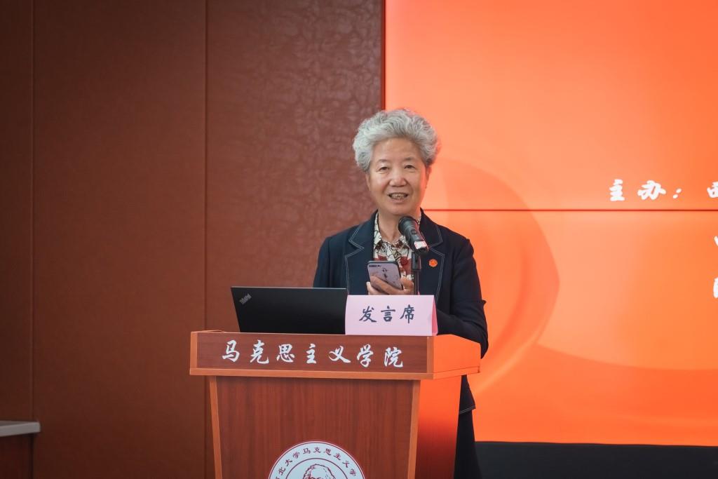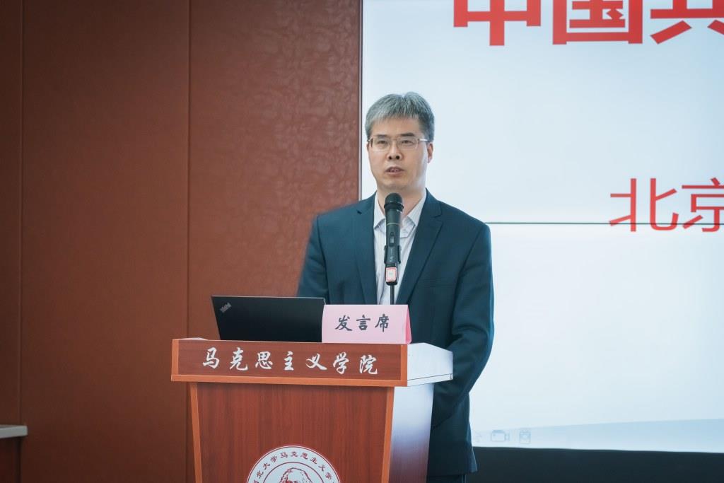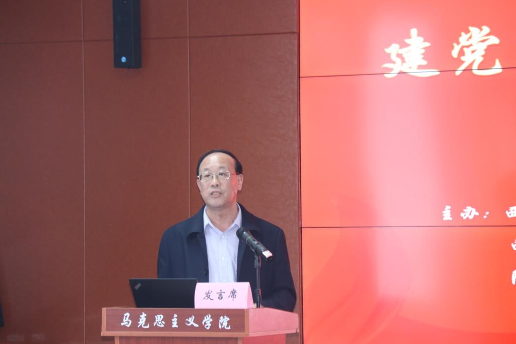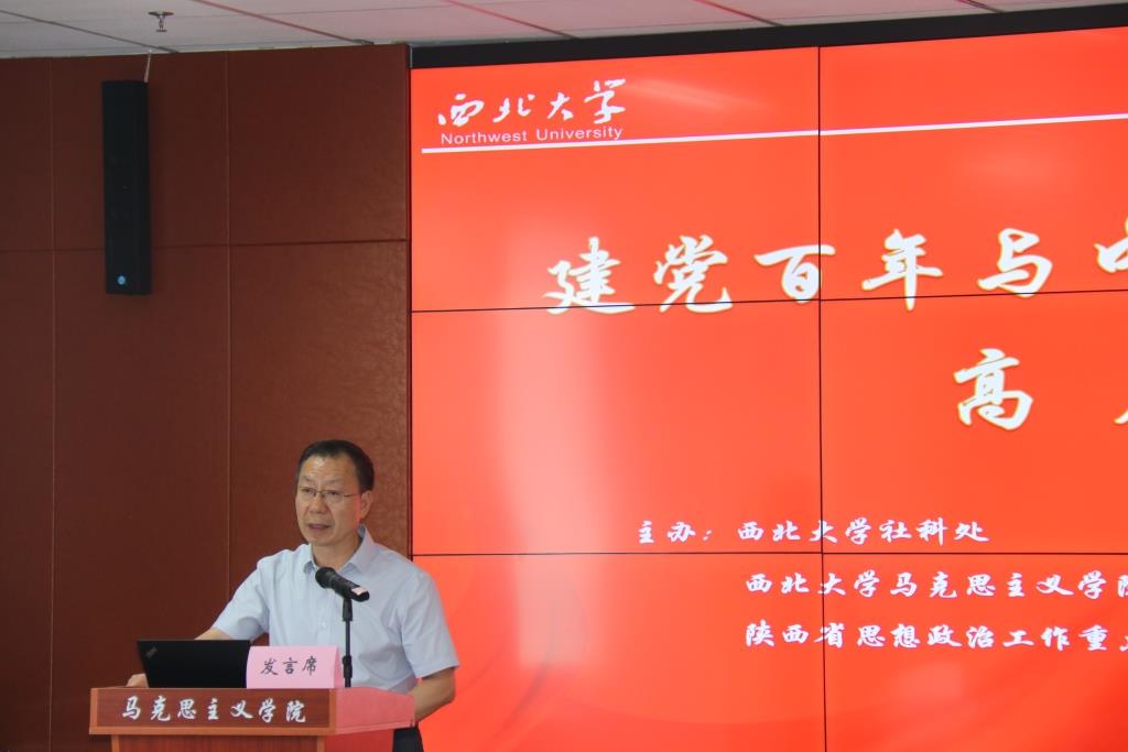 主题发言阶段:八位专家先后发言。林绪武以“党报党刊的百年发展”为题,论述了党的成立至土地革命时期、抗日战争至解放战争时期、新中国时期等三个阶段党报党刊的发展历程,提出党报党刊是中国共产党的记录者、见证者的观点。姚金果以“中国共产党的初心是什么”设问,提出陈独秀在《新青年》宣言中宣誓的“我们理想的新时代新社会,是诚实的,进步的,积极的,自由的,平等的,创造的,美的,善的,和平的,相爱互助的,劳动而愉快的,全社会幸福的”话语,正是中国共产党的初心的文本证据。陈鹏鸣通过对人民出版社词义学和历史学考察,提出人民出版社是中国共产党的伟大创造、人民出版社的宗旨是全力宣传马克思主义及推动思想认同、人民出版社的质量追求是“两个务必”“四个必须”等观点。高尚斌研究了百年中国共产党攻坚克难创造辉煌基本经验,分别是坚定信仰、勇敢斗争,实事求是、路线正确,理论创新、思想指引,为民谋利、赢得人民,党员带头、英模辈出,领导坚强、团结统一等六条宝贵经验。马启民以“中国共产党走自己的路的理论与中华民族的伟大复兴”为题,分别从中国道路与中华民族的伟大复兴、中国道路探索的三个阶段、中共走自己的路的理论进行论述,总结出中国道路的四个特征、探索的三个阶段以及毛泽东、邓小平、习近平等三位领袖对走自己的路的理论构建和贡献。柳建辉分析了百年中国共产党的历史性贡献,强调要洞悉党的领袖重要讲话背后的文本内涵,从救国、建国、富国、强国等四个方面透视党的百年贡献。李良明通过对中国共产党成立的历史事实的考证,驳斥了历史虚无主义者妄言否定党的成立的必然性,提出在党史研究中要坚持正确的党史观,抵制历史虚无主义。付建成以“延安时期推进马克思主义中国化的基本经验”为题,详细论证了以全党上下理论学习作为重要突破口、以理论联系实际学以致用为基本原则方法,以细致周密调查研究为重要桥梁,以继承和弘扬优秀传统文化为文化基础等四条宝贵经验。八位专家教授的精彩发言赢得了在场师生的热烈掌声。