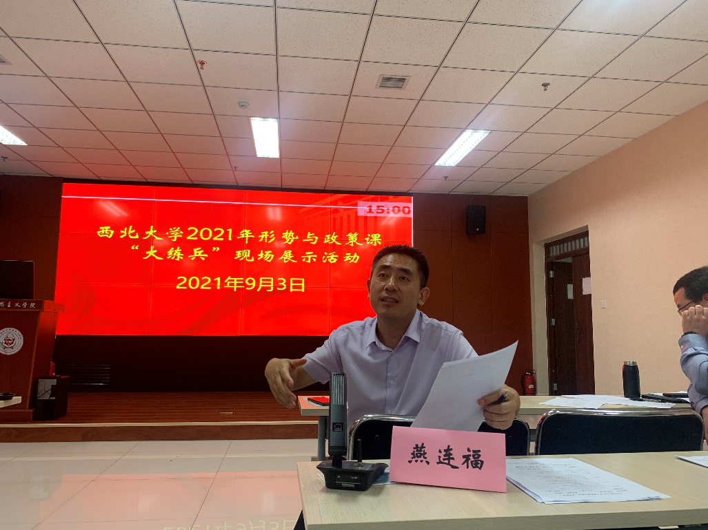 365英国官网于9月3日下午在西学楼学院报告厅和会议室举办了2021年365英国上市网站官网形势与政策课“大练兵”现场展示活动,各个学院的辅导员参加了本次活动。本次活动评委由西安交通大学365英国上市网站官网院长燕连福教授、西北工业大学365英国上市网站官网院长杨云霞教授、长安大学365英国上市网站官网院长陈怀平教授、西安科技大学365英国上市网站官网院长高振岗教授、我校学工部部长董国强、校团委书记寇嘉和365英国官网苟昭赟、赵沛、曹建军、齐钊等老师担任本次展示活动的评委,365英国官网教学副院长李志松负责主持本次活动。