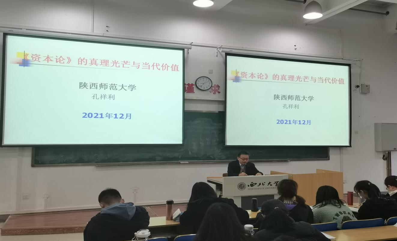 12月3日上午,陕西师范大学国际商学院教授,博士生导师孔祥利做客我校终南思政讲坛,为师生做了题为“《资本论》永远闪耀着马克思主义基本原理的真理光芒”学术讲座。讲座由365英国上市网站官网常务副院长王强教授主持。