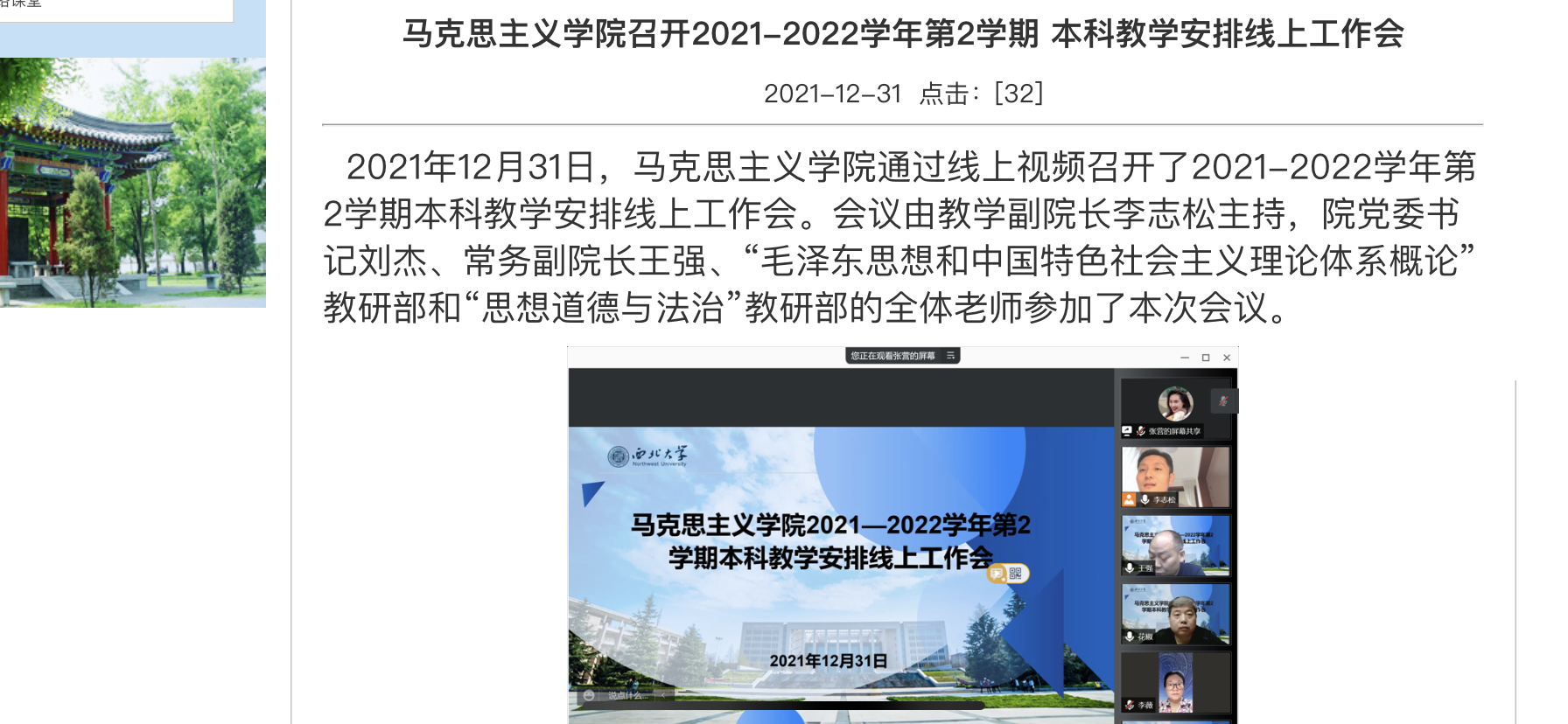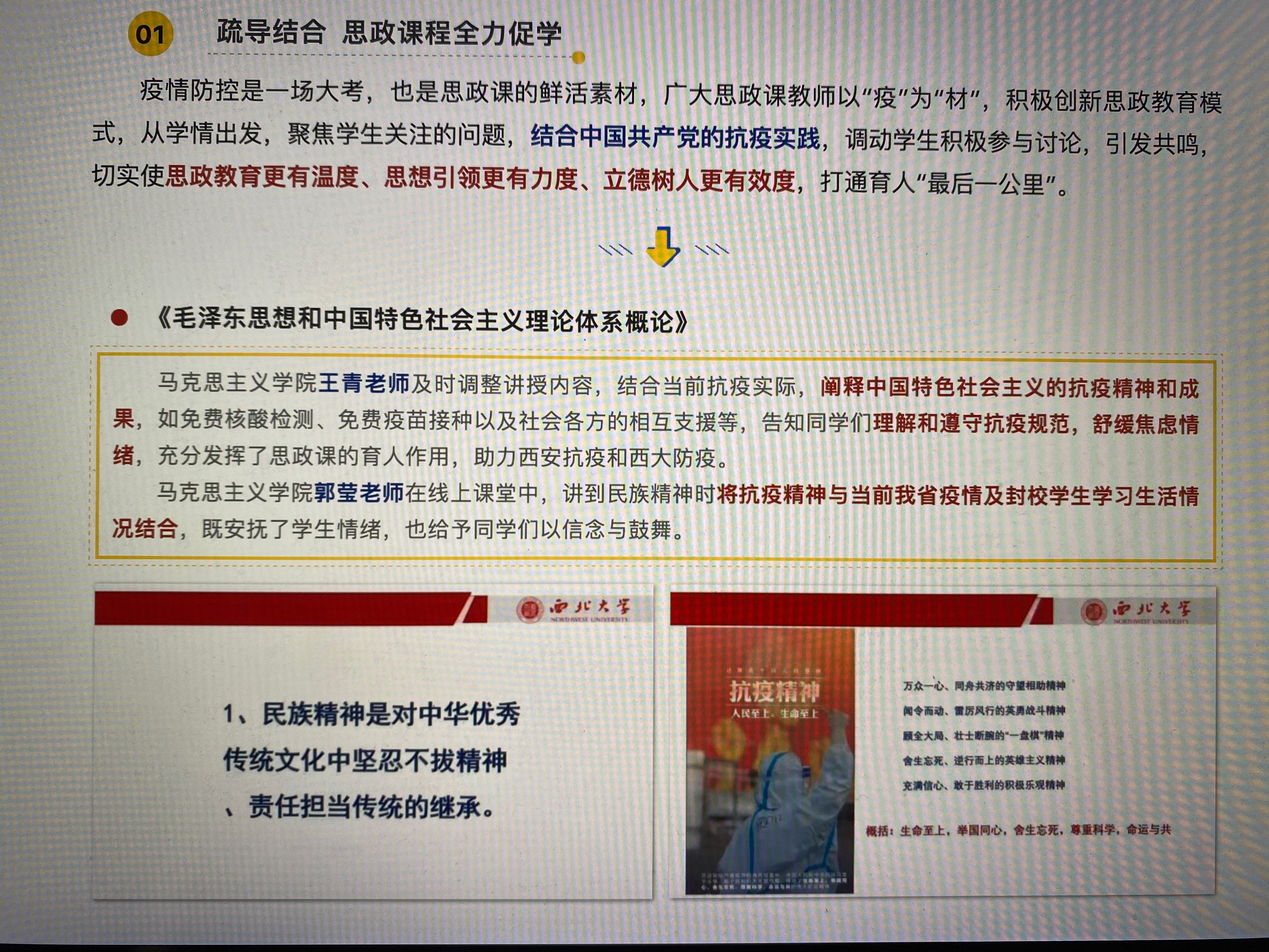 面对年终岁尾西安新冠肺炎疫情反复的形势,365英国上市网站官网积极探索推进思政课教学创新,通过“一个统筹,两个结合,三个融入”的教学实践,多措并举上好网络思政课,提振学生战疫信心, 提升思政课教学的思想性、理论性、亲和力和针对性,增强学生获得感。