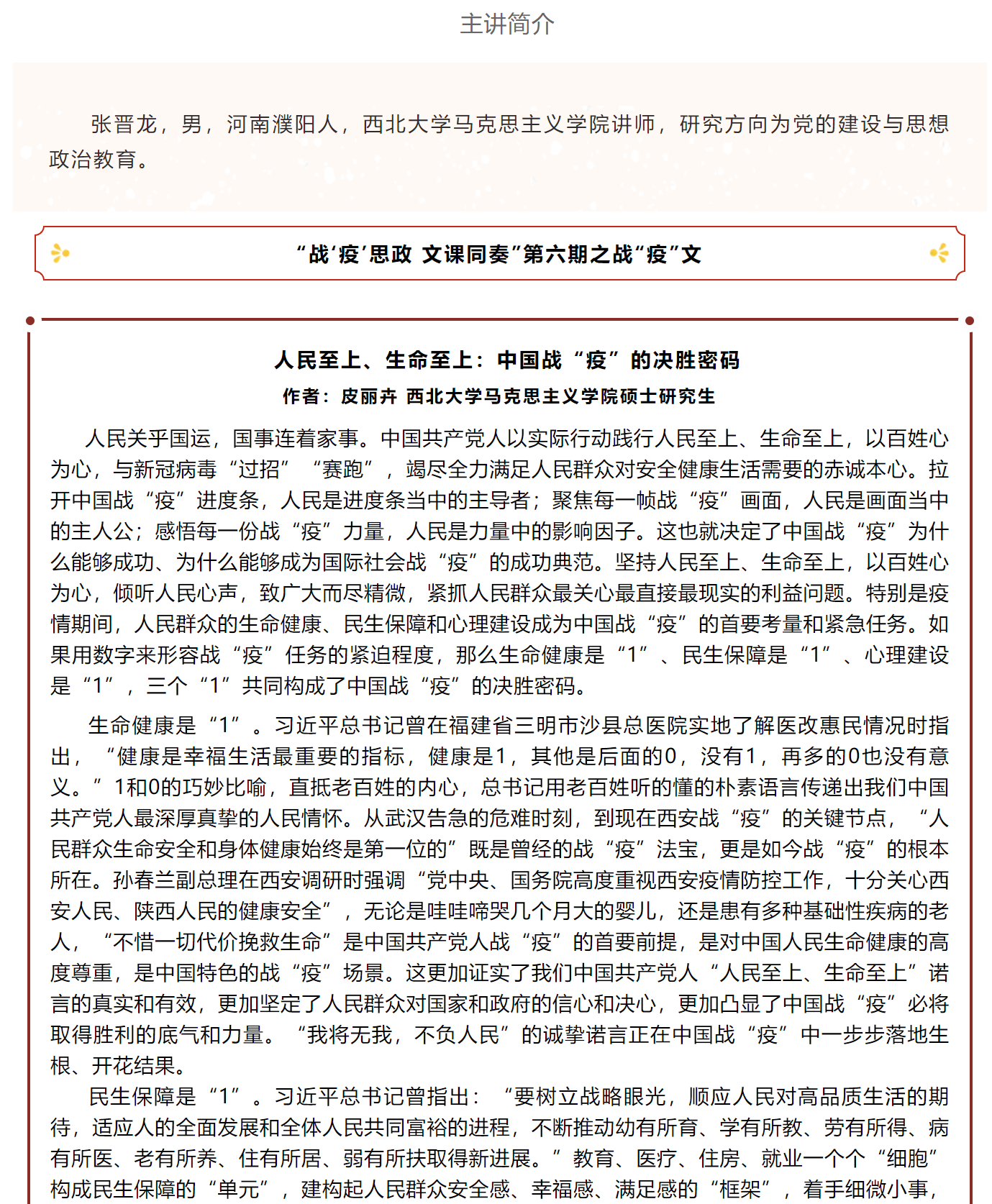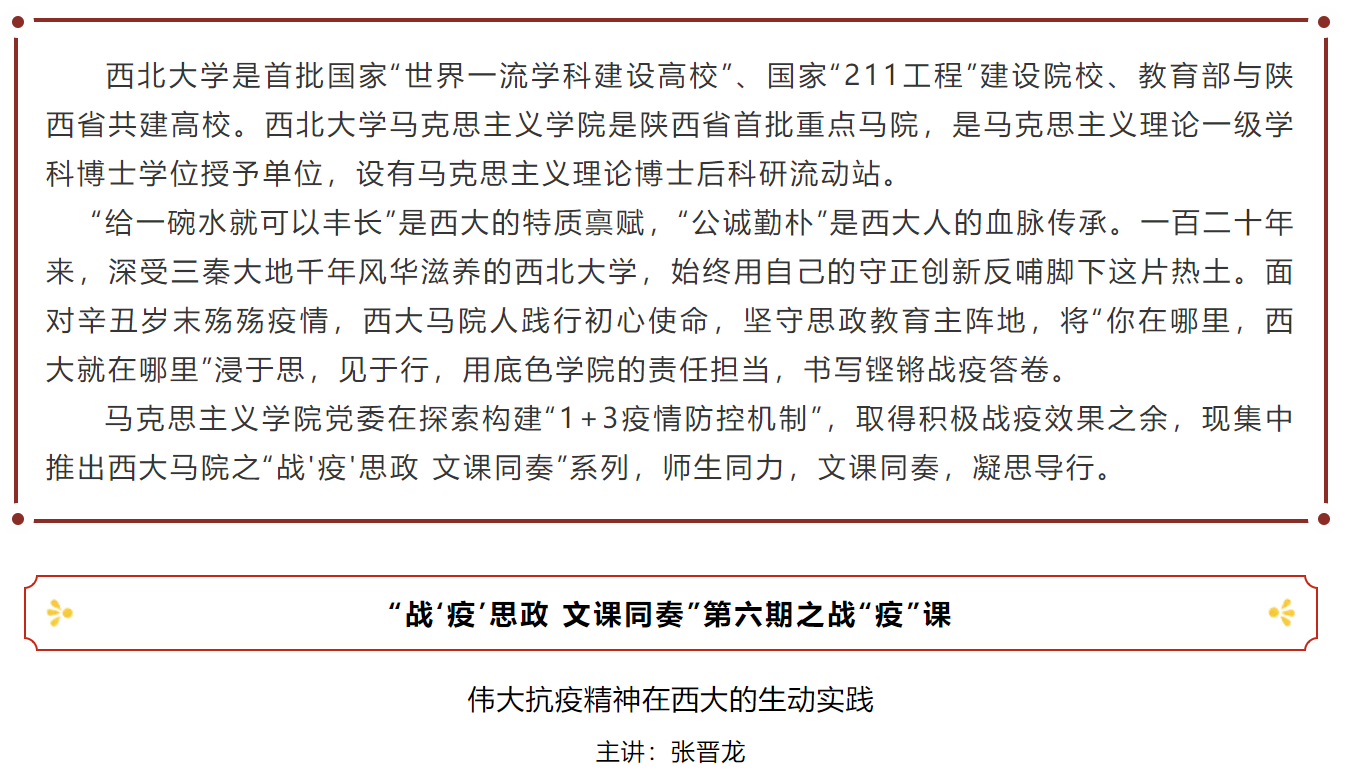 上一条:西大马院:战疫思政 文课同奏 第七期 下一条:陕西师范大学李化成教授做客“终南思政讲坛”