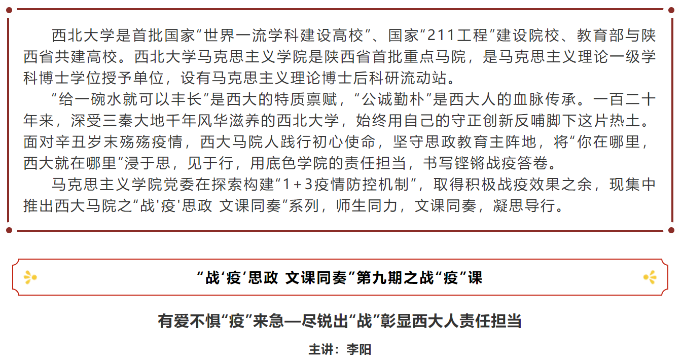 上一条:西大马院:战疫思政 文课同奏 第十期 下一条:西大马院:战疫思政 文课同奏 第八期