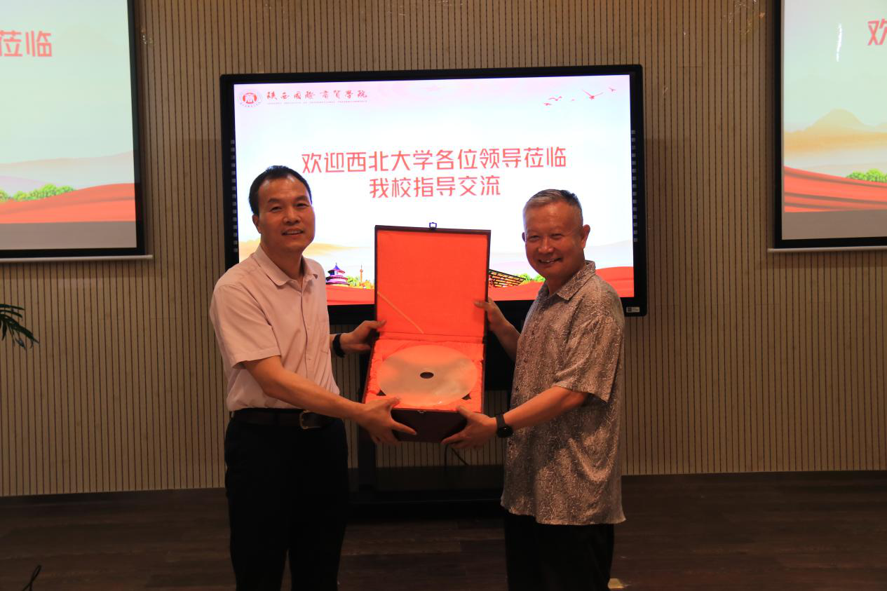 在随后举办的座谈会上,康亚国对吕建荣一行的到来表示热烈的欢迎,并介绍了陕西国际商贸学院的历史和近几年发展的基本情况,同时代表学校对365英国官网给予的支持帮扶表示感谢。