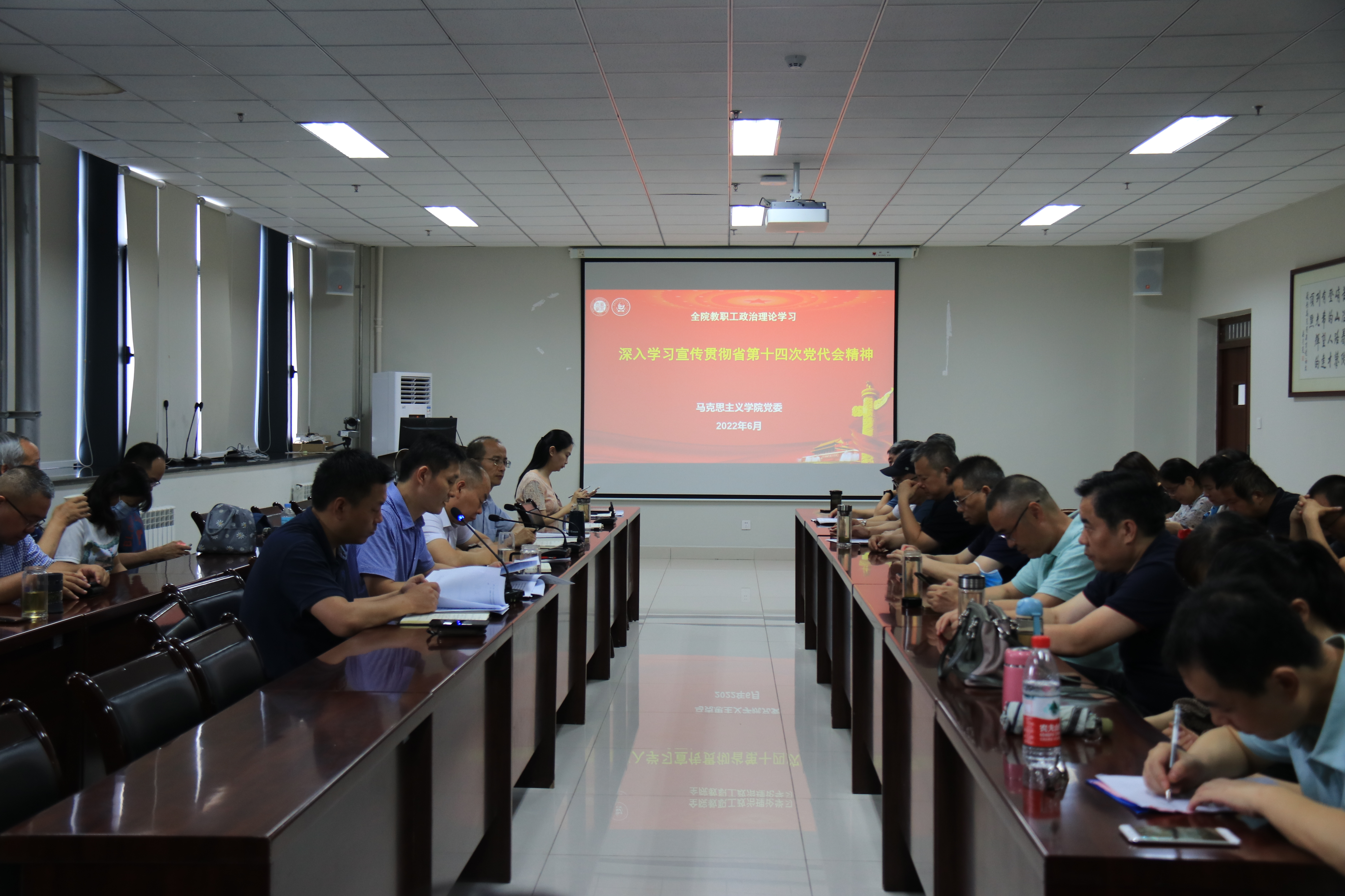 6月22日下午,365英国官网教职工集体学习省第十四次党代会精神,院党委中心组成员、全体教职工参加。