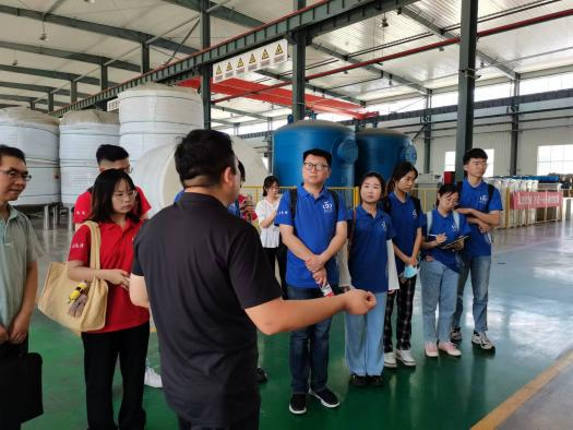 华浦公司的水处理设备致力于解决干旱地区、偏远地区、缺水地区的饮水困难问题。面对农村水源地分散、无稳定水源、山区交通不便、用电困难、设备管理维护困难、运营成本过高等问题,华浦有针对性的研发设备,设备具有免换耗材、不用电、不加药、零危害;大数据农村水务智慧监控系;APP远程智能操作等特点,针对性解决了民众的饮水困难问题。调研队还了解到,基地设有13000平米标准化生产车间,拥有4条专业化环保设备生产线,并配有无菌洁净生产车间及水质分析化验室。基地厂房顶部安装有太阳能光伏发电板,一方利用其吸收太阳光来降低厂房内部的温度,实现电能自给自足,厂房内部到处可见激励工作的标语和工作计划板,让队员感受到了企业文化对员工潜移默化的影响。