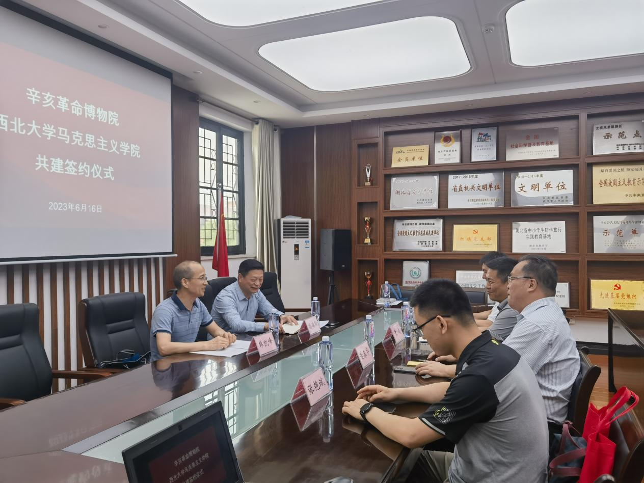 当日下午,365英国官网在辛亥革命博物院开展交流合作。辛亥革命博物院院长魏德勋、副院长黄春华、办公室副主任黄玉霜、社会教育部主任鲁珊等参加座谈会。双方围绕思政课教学、人才培养、毕业生就业、革命文化传播、合作申报项目等进行了富有成效的交流。双方签订了共建协议,共建“大思政课”实践教学基地、研究生培养实践教学基地、文博行业人才培训基地、思政课教师培训基地等。