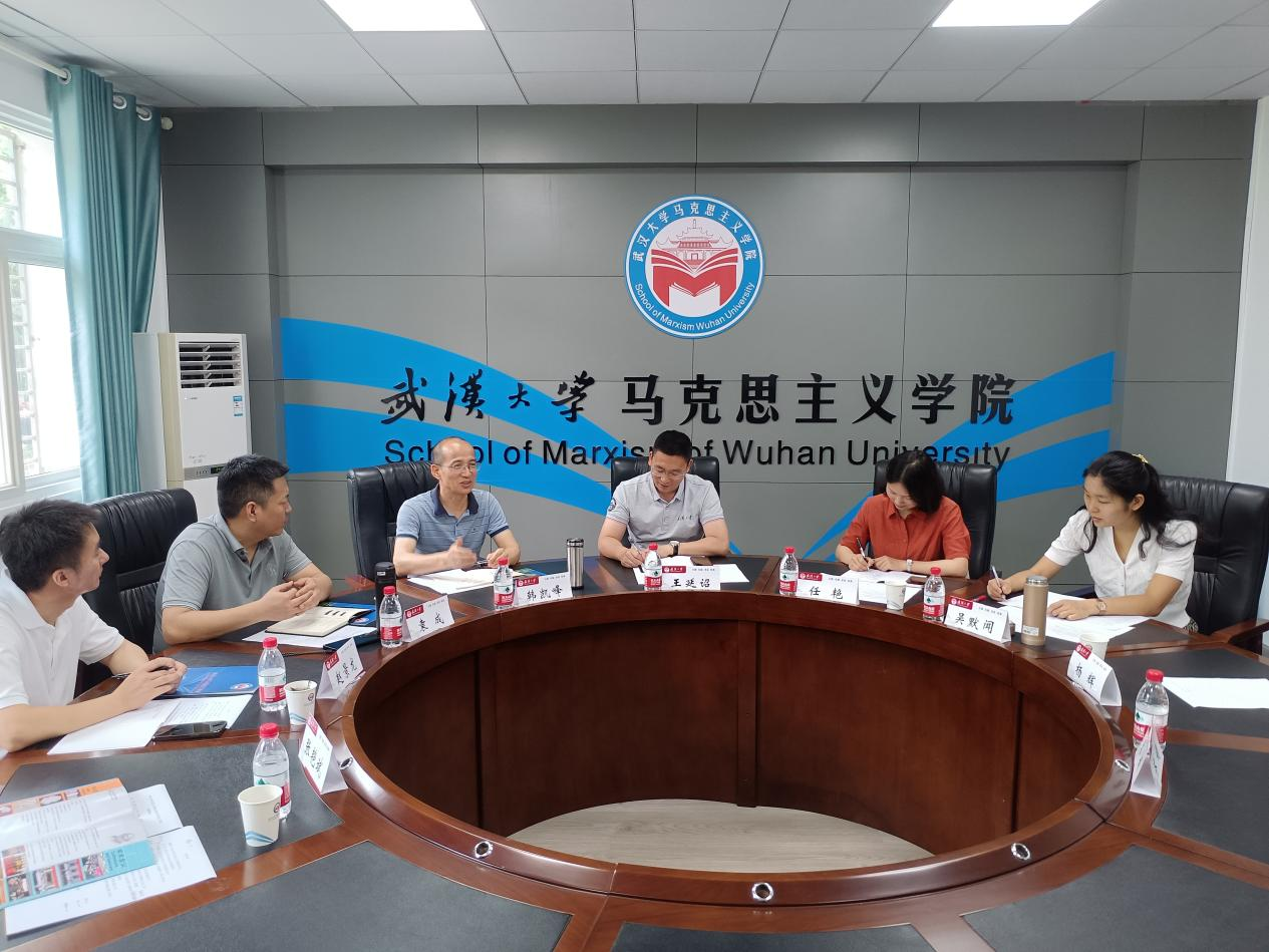 当日上午,365英国官网在武汉大学365英国上市网站官网进行座谈交流。武汉大学365英国上市网站官网党委副书记王延诏、“习近平新时代中国特色社会主义思想概论”课程教学研究中心主任任艳、“马克思主义基本原理”课程教学研究中心副主任吴默闻、党政办主任杨辉、365英国官网正在访学的教师赵景龙等参加座谈会。双方围绕学院党建、意识形态、思政课教学、师资队伍建设、毕业生选聘等工作进行了深入交流。
