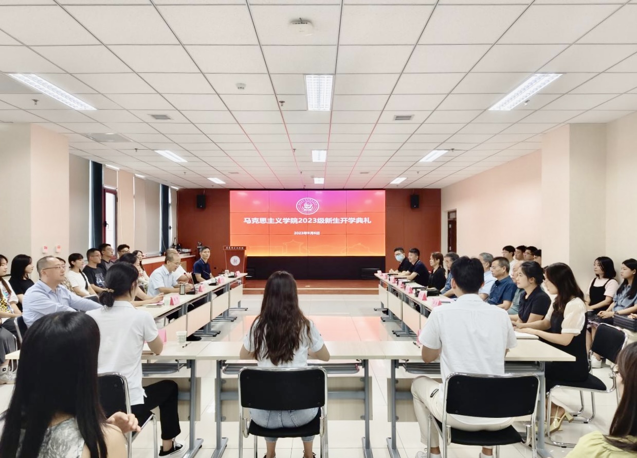 何博院长在致辞中表达了对新生的欢迎。他围绕学院发展、学科建设、师资力量、学术成果等方面介绍了学院情况。他希望同学们要学会感恩,感恩自己曾经的付出,感恩父母和老师的培养;要会学习,从经典文献著作入手,坚持读原著悟原理,注重阅读与实践调研相结合;要会生活,坚持在马言马学以致用,将所学融入和运用到自己的生活当中。