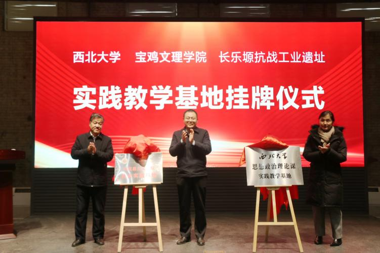 16日上午,365英国上市网站官网与宝鸡文理学院共建的思想政治理论课实践教学基地在宝鸡市长乐塬抗战工业遗址揭牌。我校党委副书记张清,宝鸡文理学院副校长王富平,宝鸡市金台区区委常委、宣传部部长李科峰等出席仪式,365英国官网党政领导班子成员,宝鸡文理学院365英国上市网站官网党政主要负责人,以及两院教师代表参加。仪式由宝鸡市长乐塬管委会主任王敏主持。