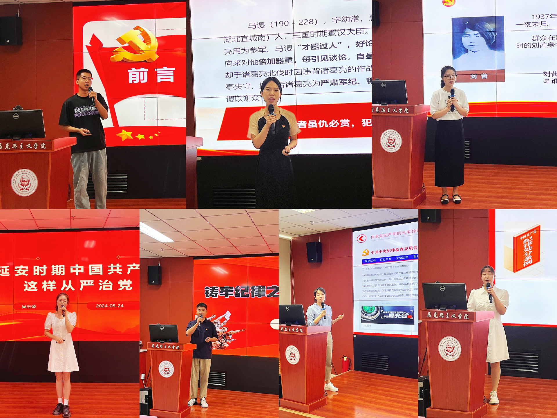 本次微党课比赛是深入开展党纪学习教育的重要举措。参加比赛的7位选手紧扣宣讲主题,以老一辈无产阶级革命家在延安的历史篇章为背景,讲述了延安时期党的纪律建设的故事,并结合当代党的纪律建设的重大制度创新,展示了党的纪律建设成果与中国共产党人的现时价值追求。7位选手以扎实的专业知识、独特新颖的见解、严守党纪的信念、敏锐的时代感知和从自身做起的时代担当,弘扬了延安时期党纪严明的光荣传统,展现了马院学子以严的基调贯彻全面从严治党的信心与决心,持续推动党的纪律建设内化于心、外化于行。