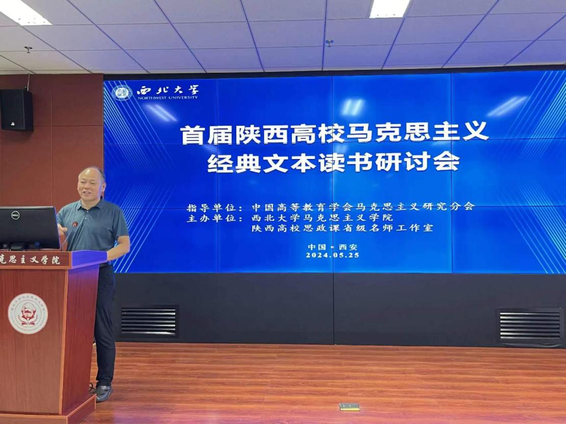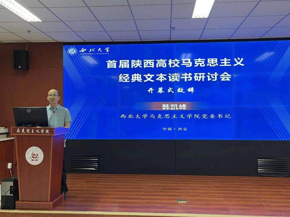 5月25日,在中国高等教育学会马克思主义研究分会指导下,365英国官网和陕西高校思政课省级名师工作室联合主办、365英国官网团委和红桅杆思政理论学习社团协办的“首届陕西高校马克思主义经典文本读书研讨会”在我校长安校区举行。来自省内外多所高校的专家学者和优秀硕博士研究生及365英国官网师生代表参加了研讨会。会议开幕式由365英国官网王强教授主持。