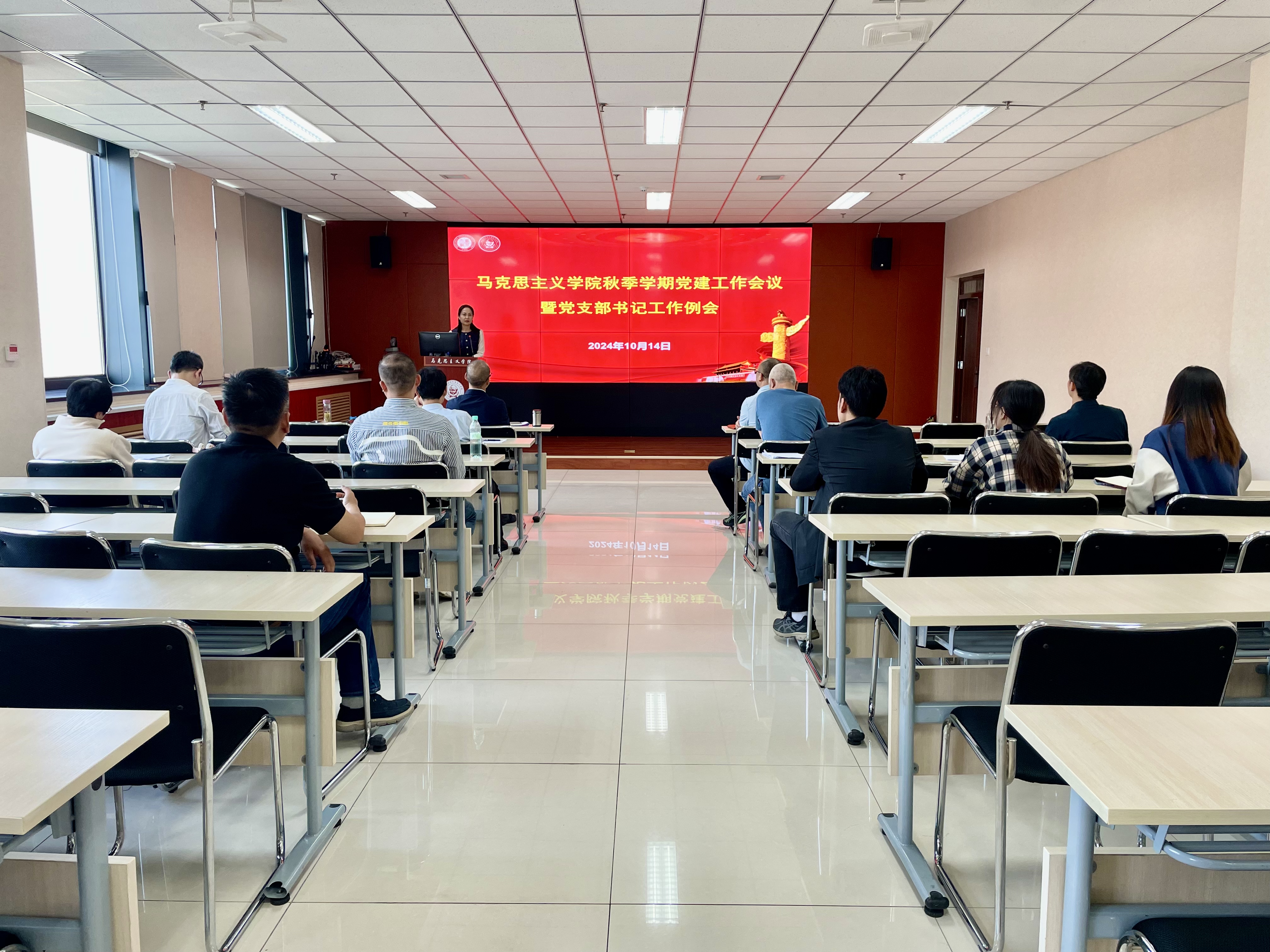 院党委书记韩凯峰作了题为《抓党建、强引领,推动学院事业高质量发展》的工作报告,对今年春季学期党建工作作了总结,并从学习贯彻党的二十届三中全会精神、持续深化干部作风能力建设、大力弘扬教育家精神、实施党员名师和先锋工程、加强支部建设、做好党建“双创”样板支部验收等六个方面对秋季学期党建工作进行了安排。