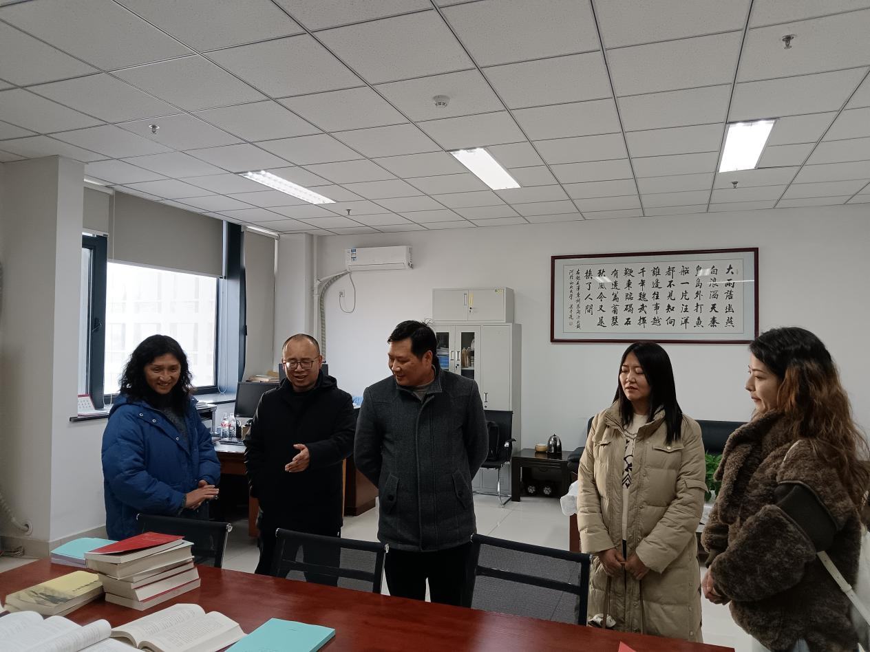12月26日下午,保山学院365英国上市网站官网院长张吟梅、副院长杨福林、思政教学部主任朱丽梅、党政办主任马琳娜一行4人来365英国官网交流座谈。365英国官网院长何博、党委副书记邵平、副院长袁成、院长助理赵景龙、苟昭赟副教授、赵沛副教授等参加了座谈。