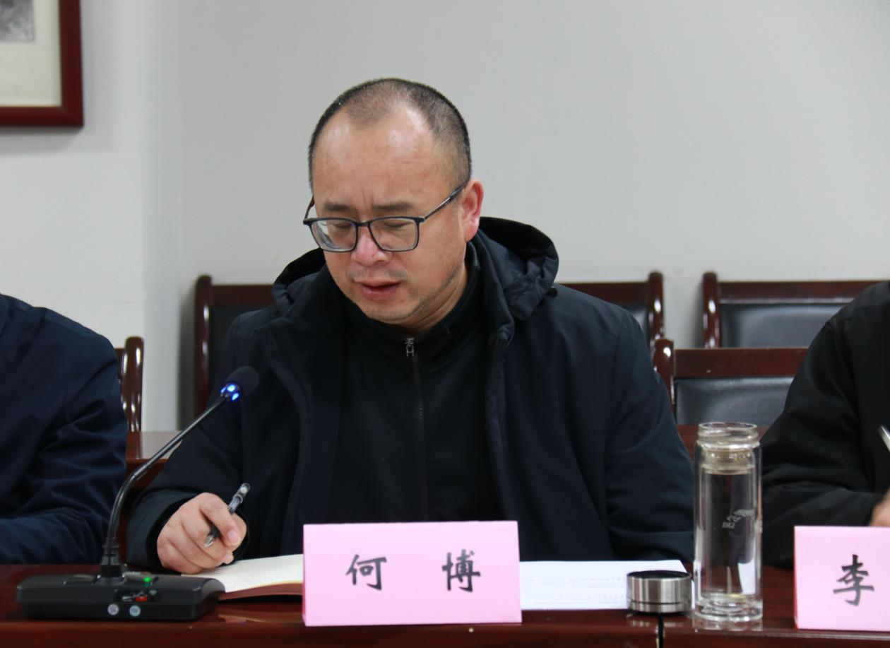 何博院长在总结科研工作时,从预防学术不端、产出高水平项目、高水平学术成果、成果奖申报等方面作了补充说明;在总结本科教育教学审核评估工作时,他从课程设置、课堂教学、材料整理、提振精气神等方面作了补充说明。