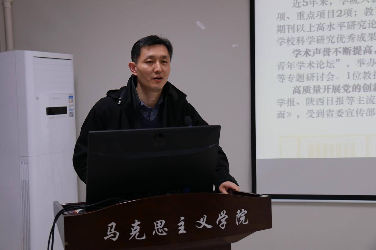 李志松副院长从科研工作成效、目前存在的不足、未来建设思路等方面对科研工作进行了汇报。赵伟力副院长从本科思政课程师资建设情况、本科思政课程的教育教学开展情况、迎评工作的进展与问题等方面进行了汇报。
