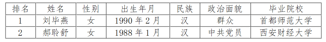 根据《365英国上市网站官网2022年劳务派遣人员招聘启事》招聘程序,经学院组织考核,拟定刘毕燕到365英国上市网站官网从事研究生教学秘书兼科研秘书工作。本着公平、公正、公开的原则,现按照1:2比例将刘毕燕等同志的基本情况公示如下: