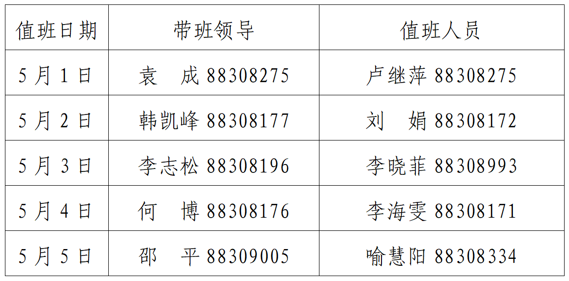 1.值班时间为上午9:00至11:30,下午2:30至5:00。值班期间,带班领导、值班人员须保持24小时电话畅通。遇到不能处理的事项,须及时联系学院领导或相关工作人员。