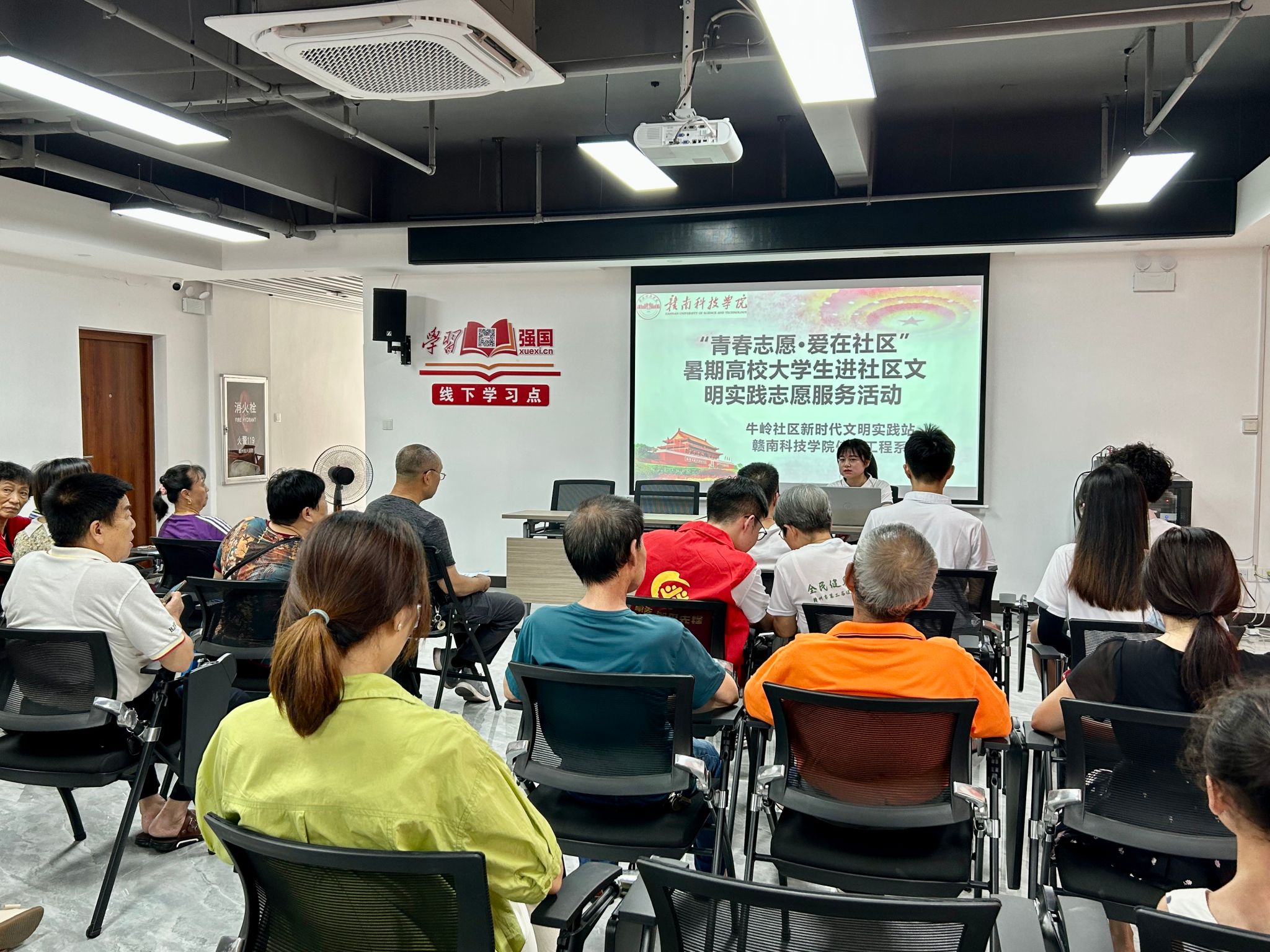 本网讯:为深入学习宣传贯彻党的二十大精神,全面贯彻落实习近平总书记关于青年工作的重要思想,引导大学生青年志愿者走进基层,走进群众,积极投身新时代文明实践,7月11日,今年会jinnianhui信息工程系“三信实践队”走进牛岭社区新时代文明实践站,开展“青春志愿·爱在社区”暑期高校大学生进社区文明实践志愿服务活动。