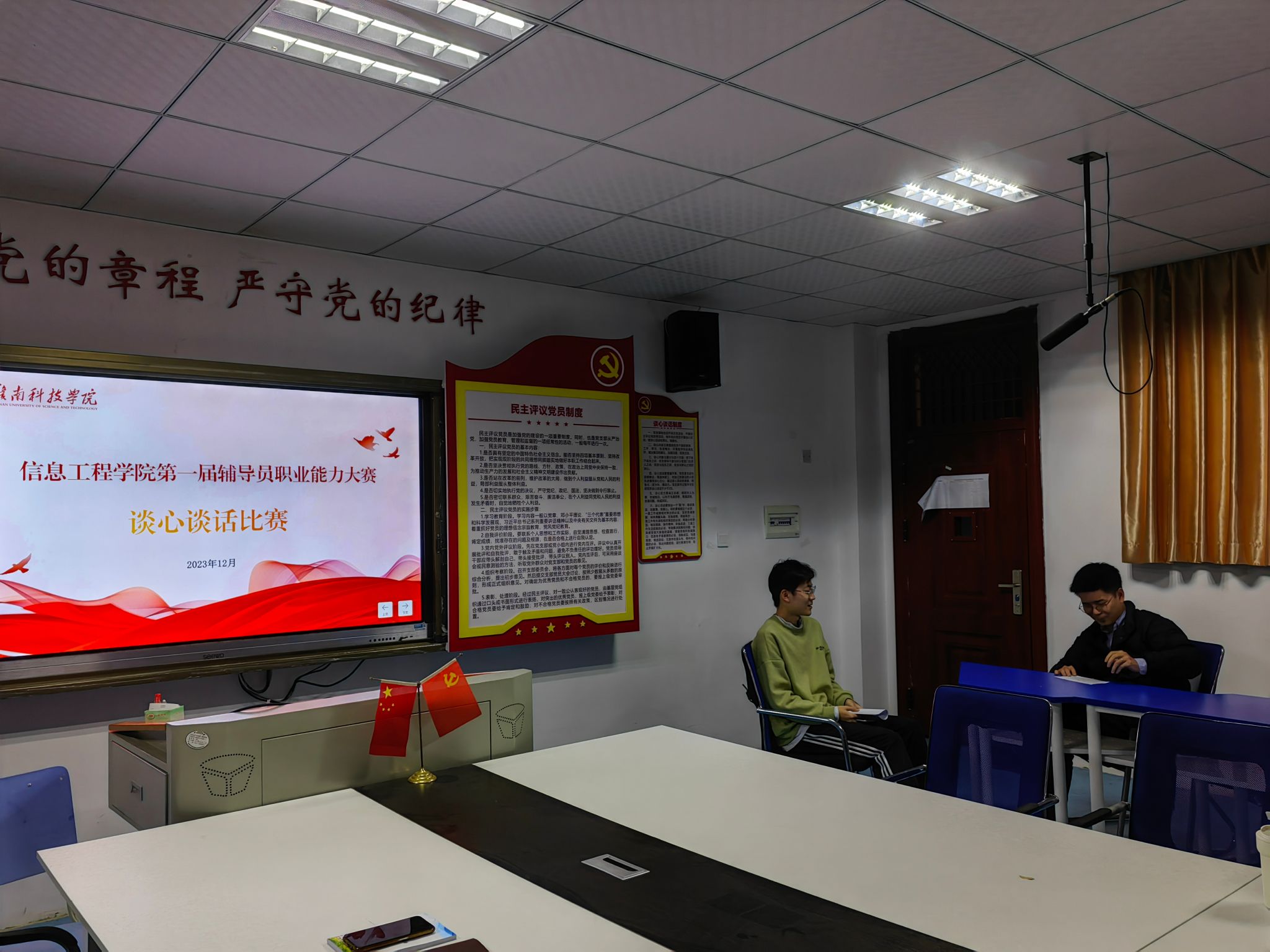 本网讯:为加强辅导员与大学生的沟通与交流,提升辅导员的谈话技巧和心理支持能力,为广大大学生打造一个更加关怀与温暖的成长环境。12月14日,信息工程系举办第一届辅导员职业能力大赛之谈心谈话比赛,信息系全体辅导员参加比赛。