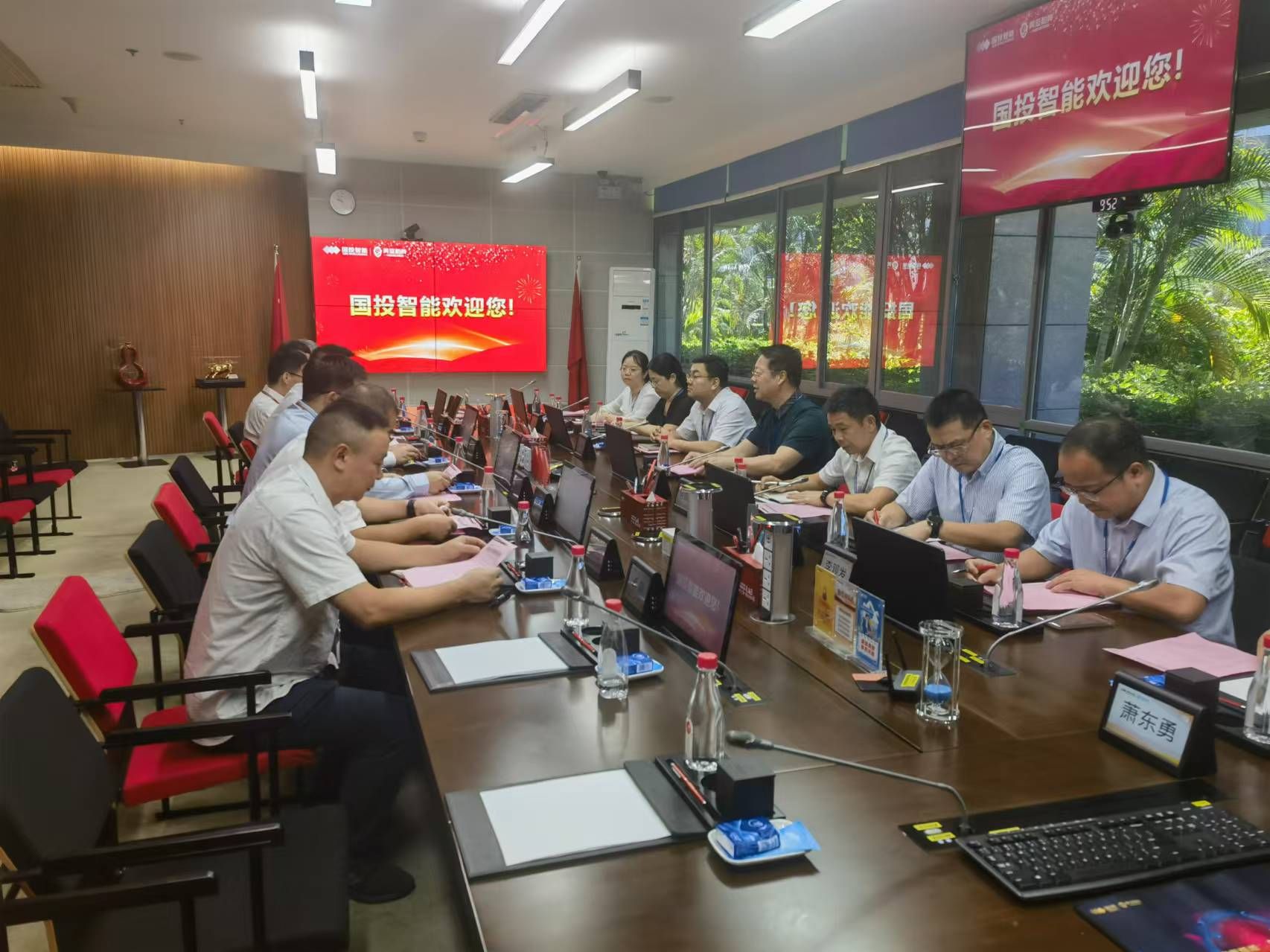 本网讯:10月18日,学校党委书记邱建军,党委委员、副校长何锦龙一行前往国投智能(厦门)信息股份有限公司进行访企拓岗和合作交流,党政办公室、今年会、文法学院负责人陪同调研。国投智能(厦门)党委副书记、总经理周承祖及企业高层给予热情接待,双方就校企合作及产业发展进行深入探讨。