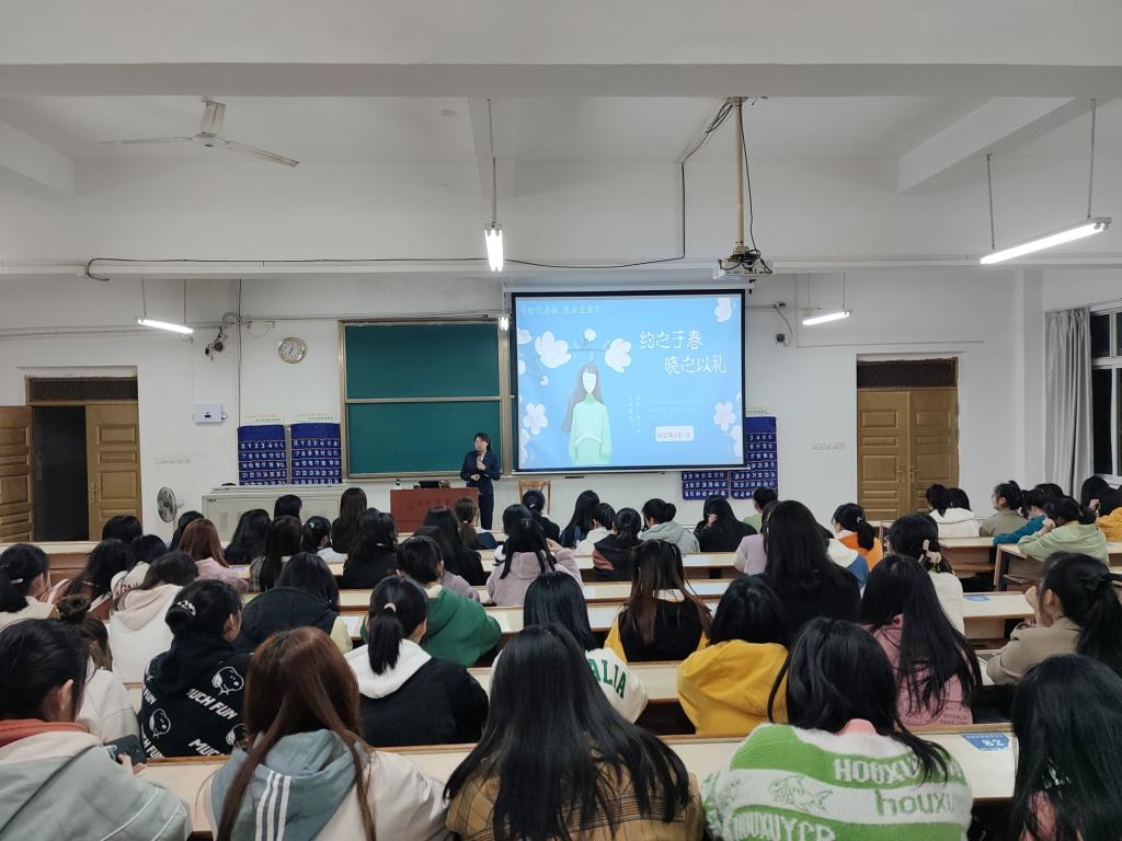 3月7日晚,在主教z1d4教室开展主题讲座,王莹蓥老师以“约之以春,晓之以礼”为主题为信息同学们讲解女生节的举办的意义以及女生礼仪。讲座持续了一个半小时,同学们认真聆听、积极讨论,现场气氛活跃。
