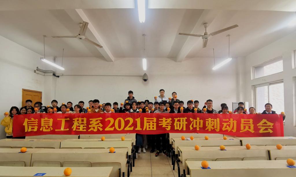 2021届考研即将拉开帷幕,为了鼓舞士气,给考研学生提供一些建议,2020年12月8日下午,我系于主教Z413举办考研冲刺动员会,参与此次大会的有魏炳辉老师和黎康婷老师,以及准备考研的大三学生,大会由魏炳辉老师。在动员会开始前,每个位置上都放上了脐橙,以祝愿我系每个考研的学子都可以心想事成。