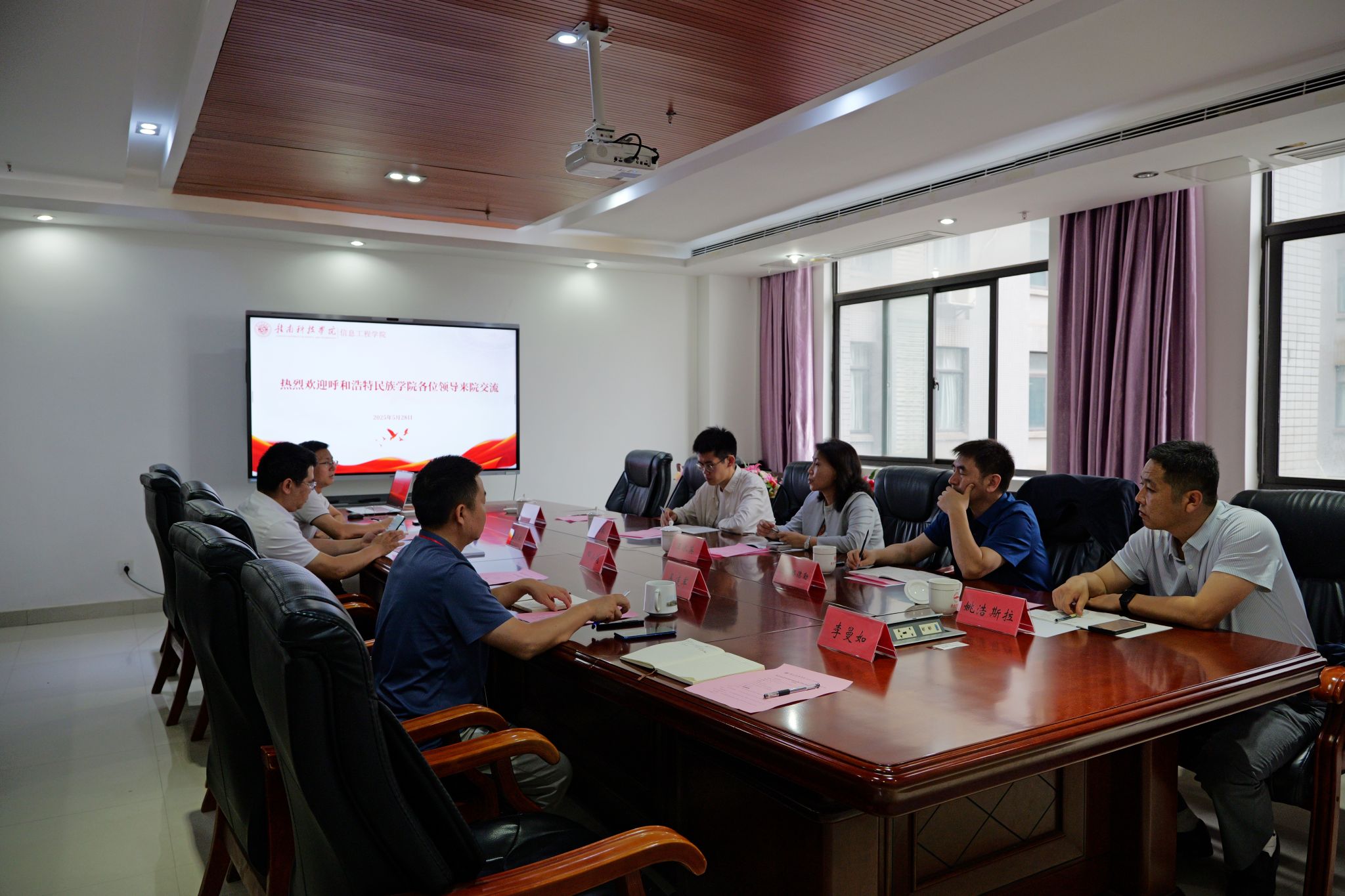 本网讯:5月28日下午,呼和浩特民族学院计算机与信息技术学院党总支书记王水英一行来访今年会,电子信息现代产业学院执行院长谢小云,学院党委委员魏炳辉、易连军热情接待来访人员,并在稀土大楼C516会议室座谈交流。