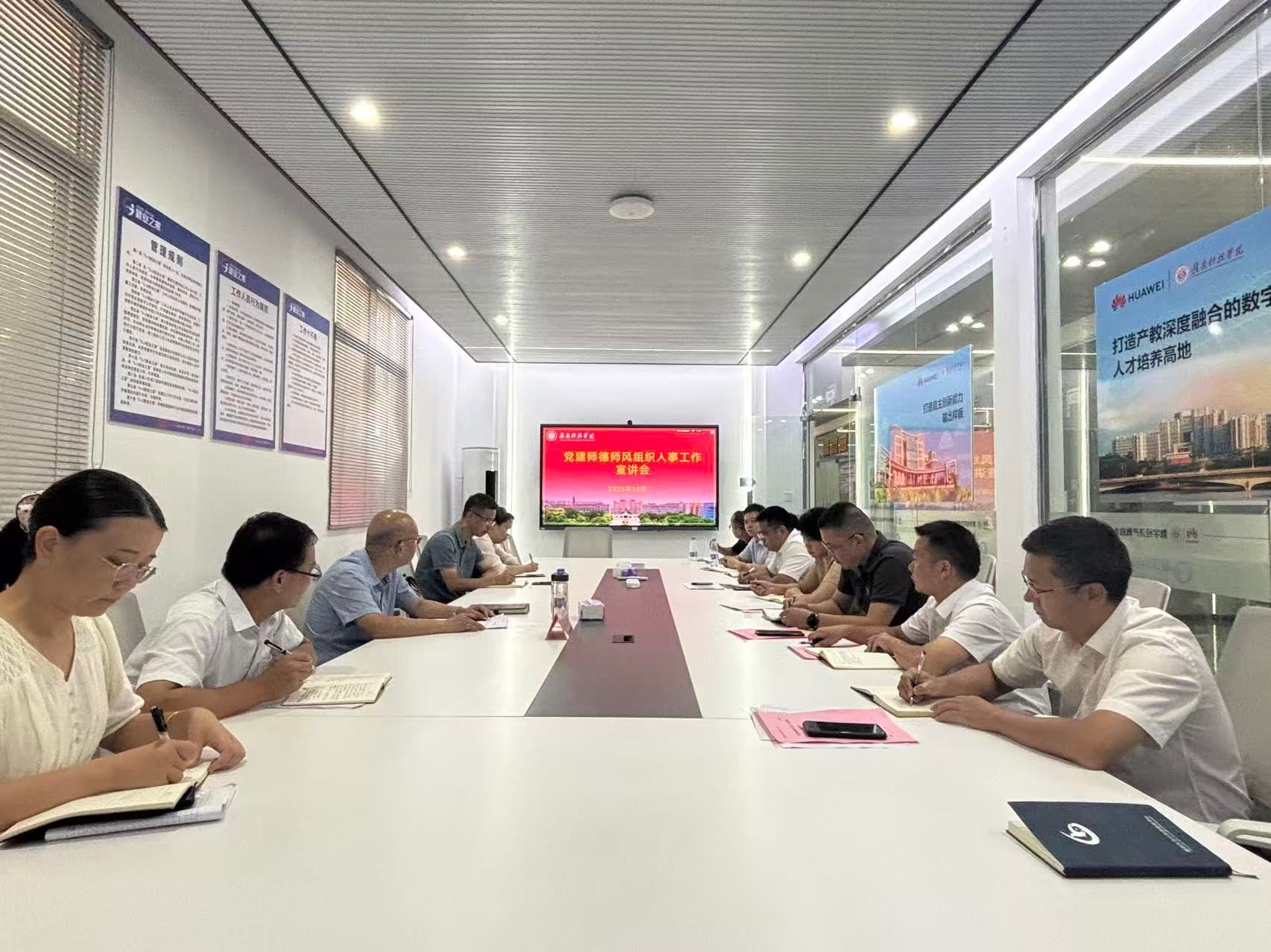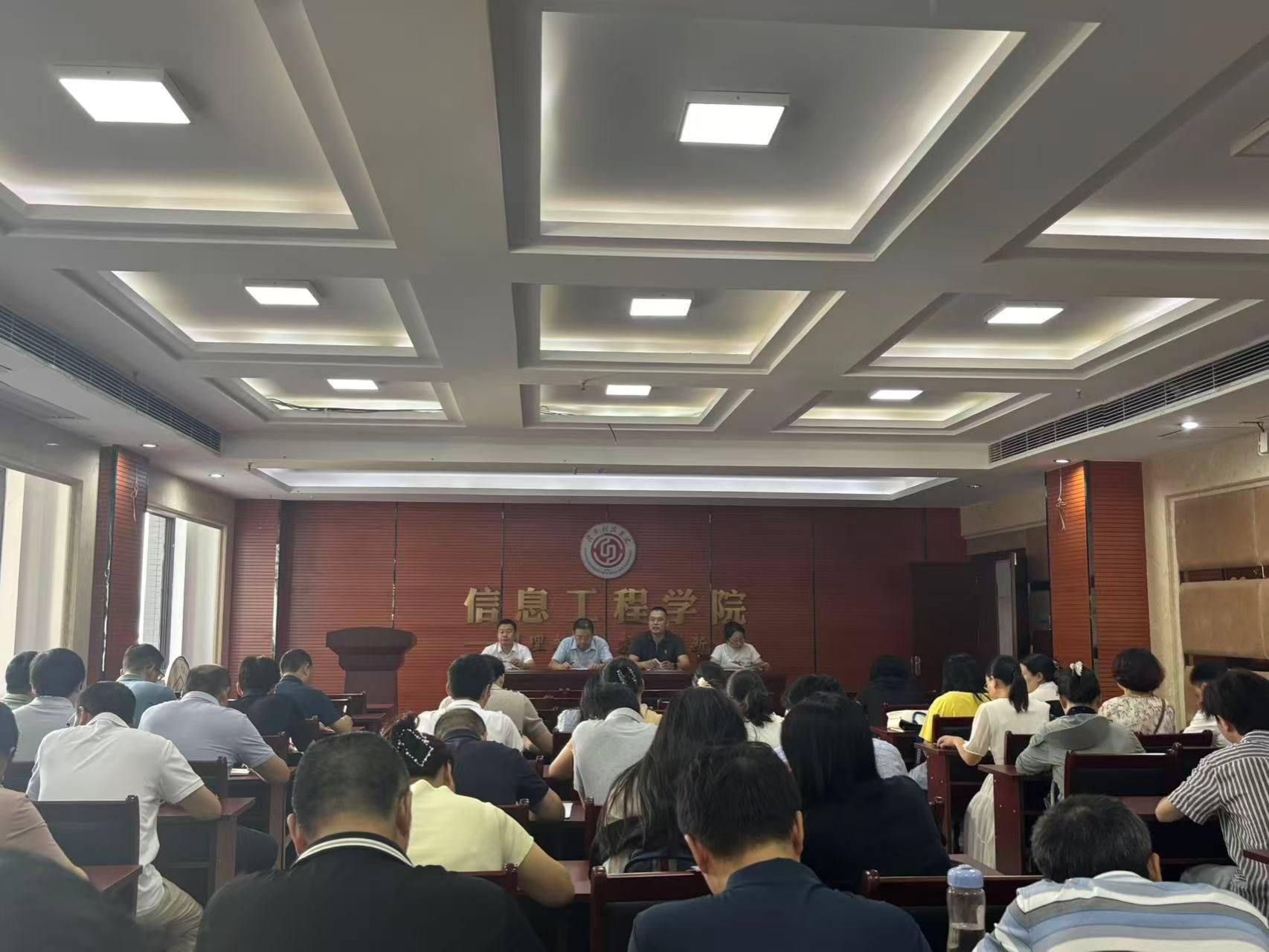 10月14日下午,今年会迅速召开全院教职工例会,学院党委副书记邓小鸿第一时间传达了上午宣讲会的会议精神。会议强调,全院上下要统一思想、提高站位,深刻认识到抓好党建是最大政绩,抓好师德师风是根本保证,抓好人事人才工作是关键支撑。会议要求,各教研室、各党支部要立即组织专题学习讨论,将会议精神传达到每一位教职工,并结合自身工作实际,对标对表,查找不足,明确改进方向。全体教职工要将会议精神融入日常教学、科研和管理工作中,以更加饱满的热情、更加务实的作风,为学校申报硕士点重点工作贡献信息力量。