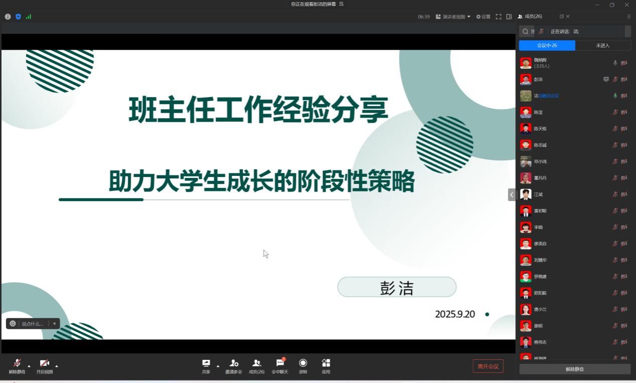 优秀班主任教师彭洁分享“分阶段精准引导”育人模式,为班主任工作提供实践路径。