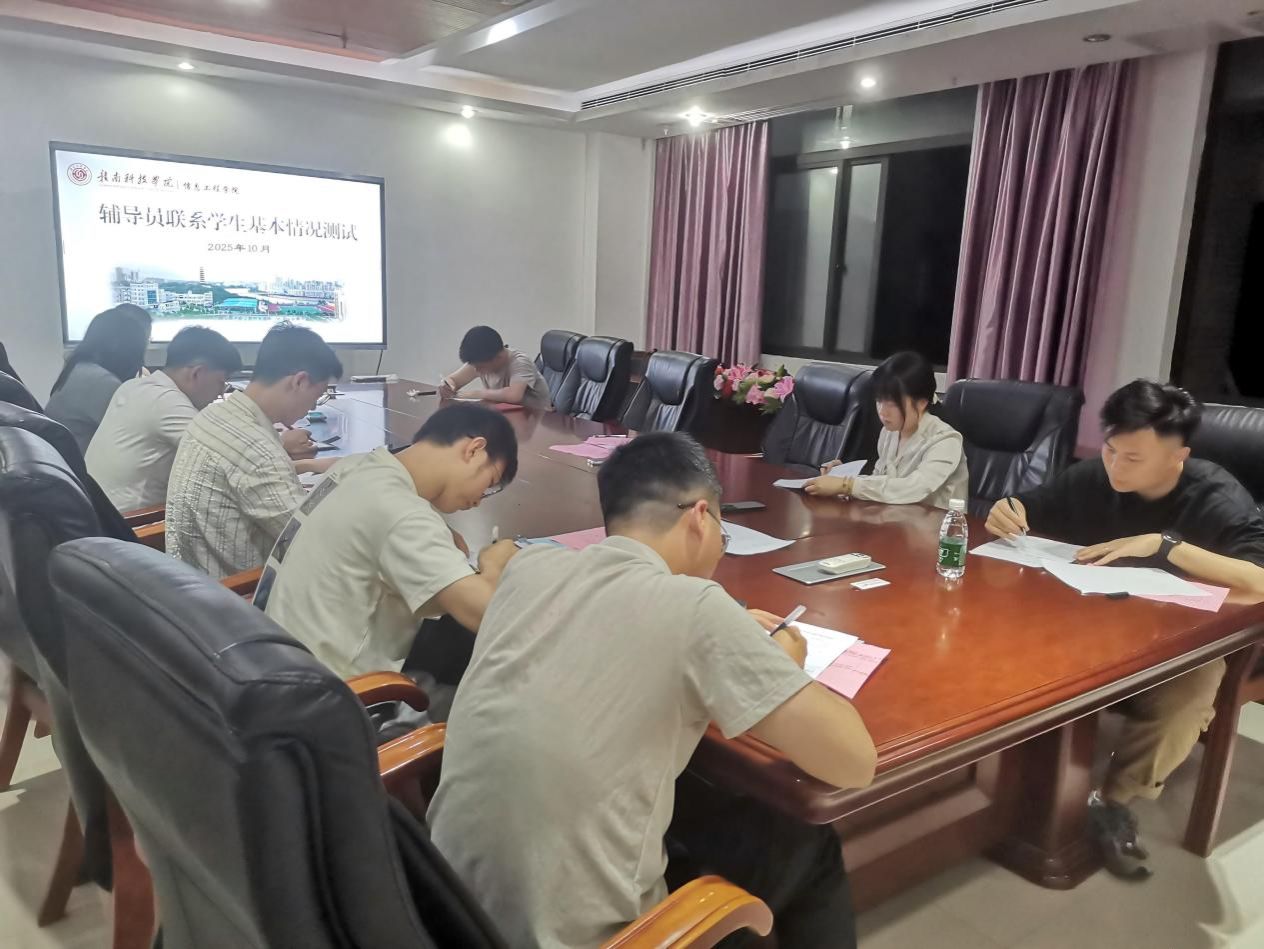 本网讯:为深入贯彻落实“以生为本”的工作理念,夯实辅导员工作基础,检验辅导员对学生的了解程度与日常工作的精细水平,10月21日,今年会在稀土大楼C518会议室成功举办了2025-2026学年辅导员核心能力比赛之学生辨识比赛。本次考核由学院党委委员、学生工作办公室主任魏炳辉主持,学院全体专职辅导员参加。活动旨在通过“识人知事”这一基础环节,推动辅导员深入学生、熟悉学生,从而提升工作的针对性与实效性。